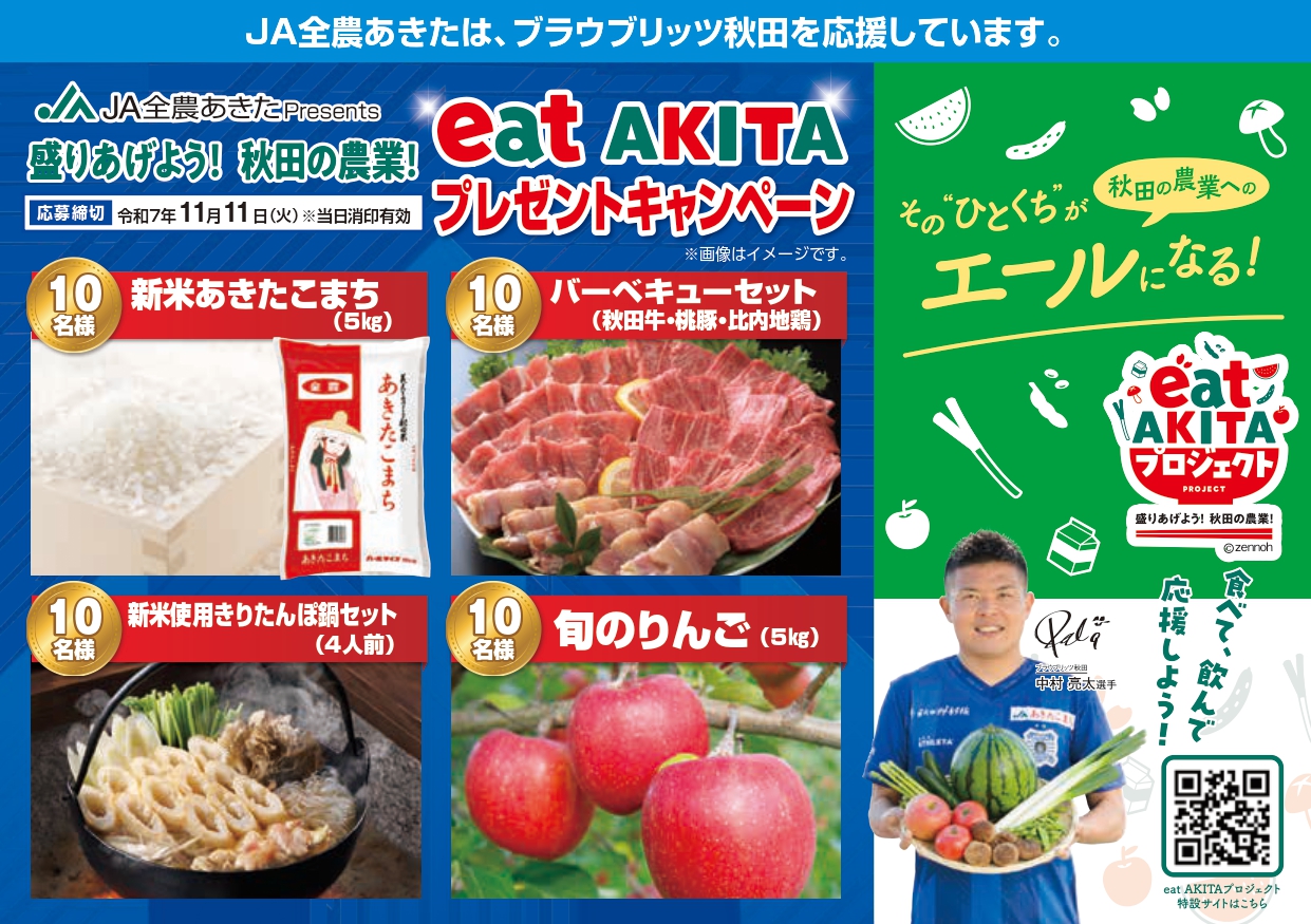 【JA全農あきた】 秋田県産農畜産物があたる! eat AKITAプレゼントキャンペーン抽選会