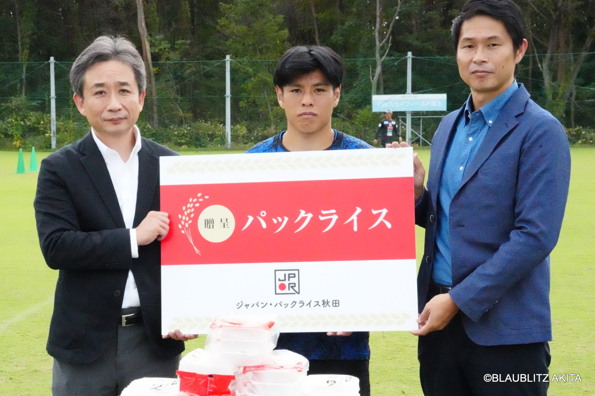 10月14日(火)、株式会社ジャパン・パックライス秋田様より、ブラウブリッツ秋田クラブハウスにパックライスを贈呈いただきました。