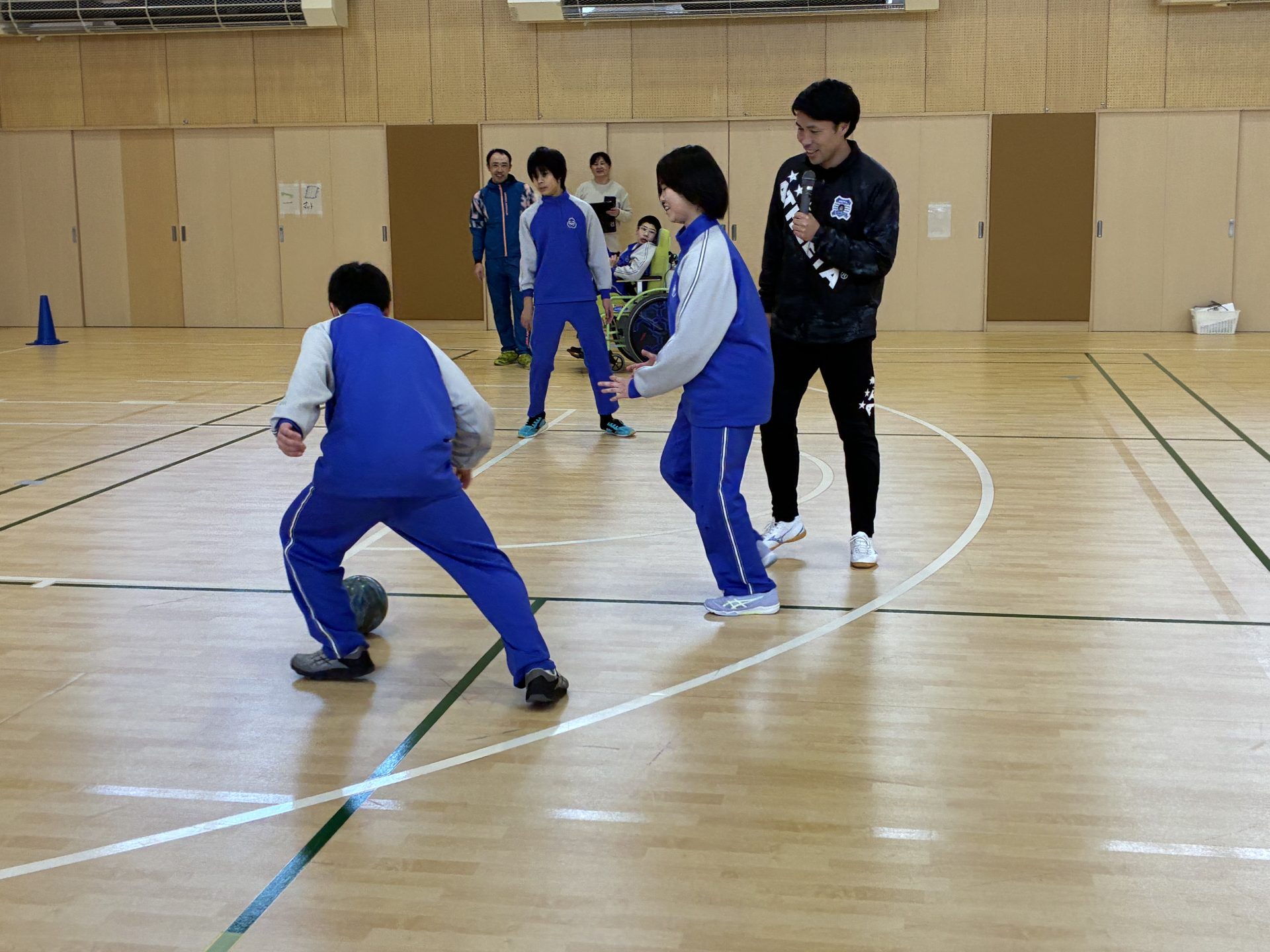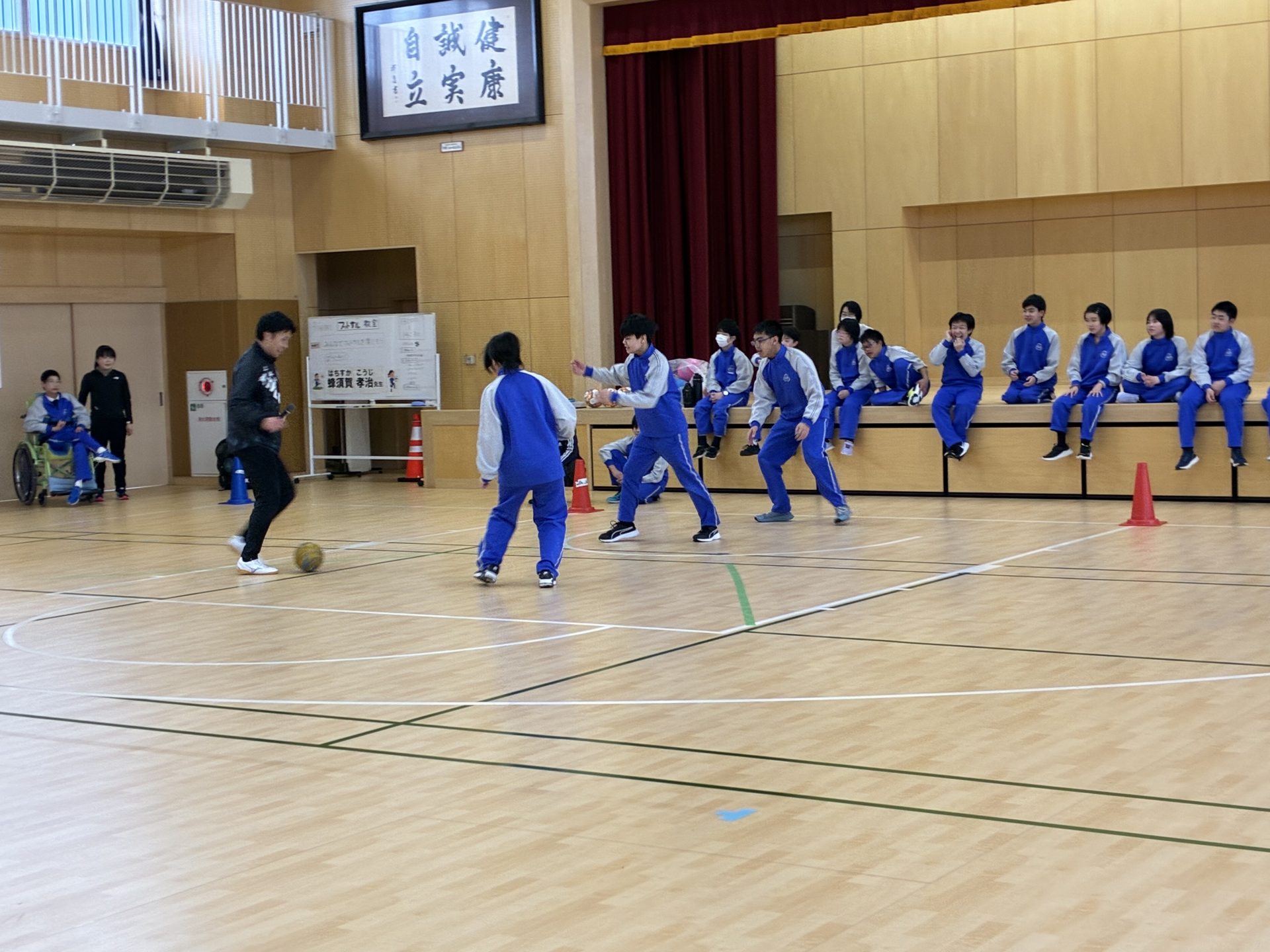 最後は、生徒vs蜂須賀の試合を実施。練習の成果を存分に発揮し、果敢にゴールへ向かう姿が印象的でした。多くのゴールも生まれ、会場は大いに盛り上がりました。