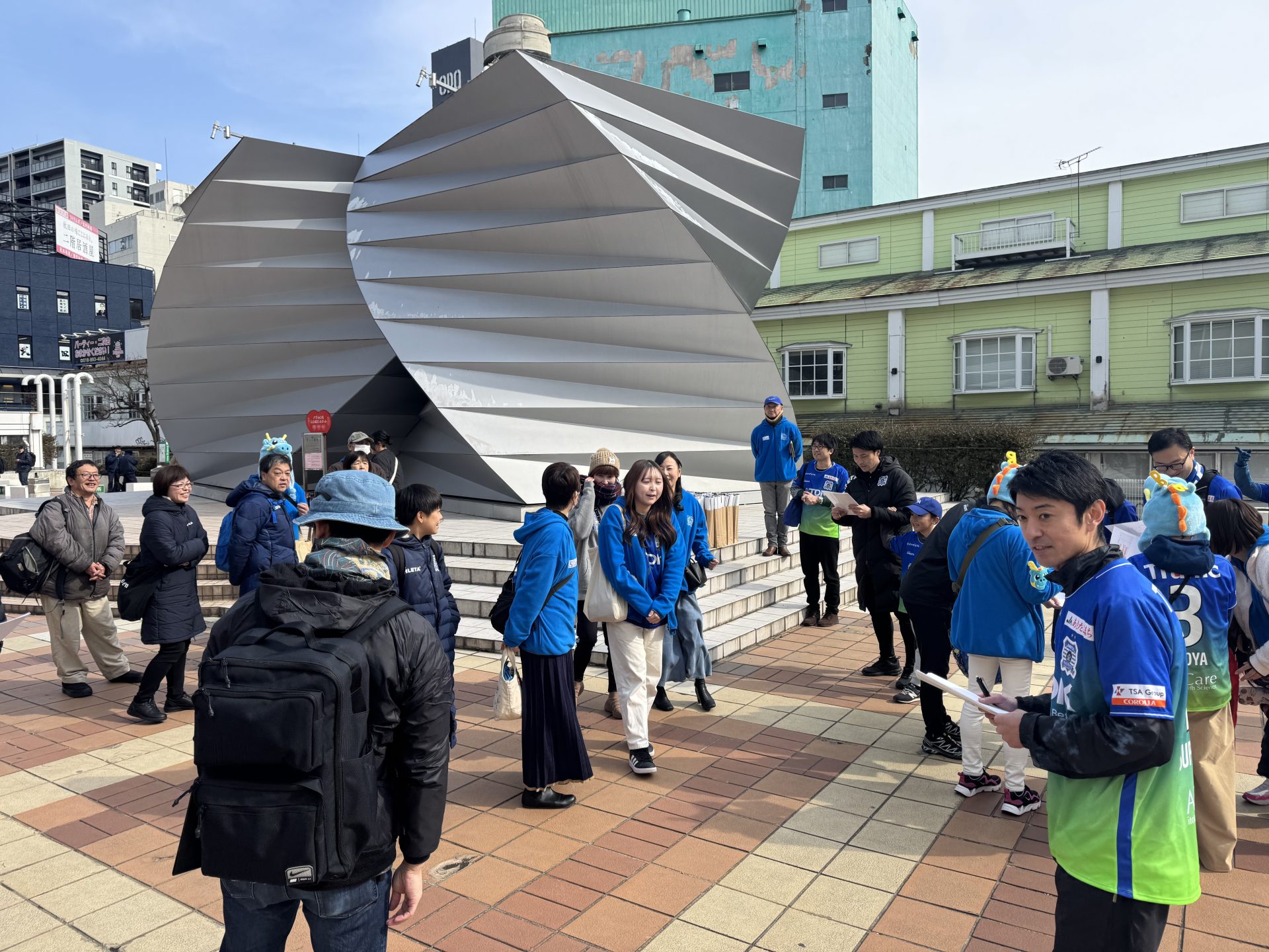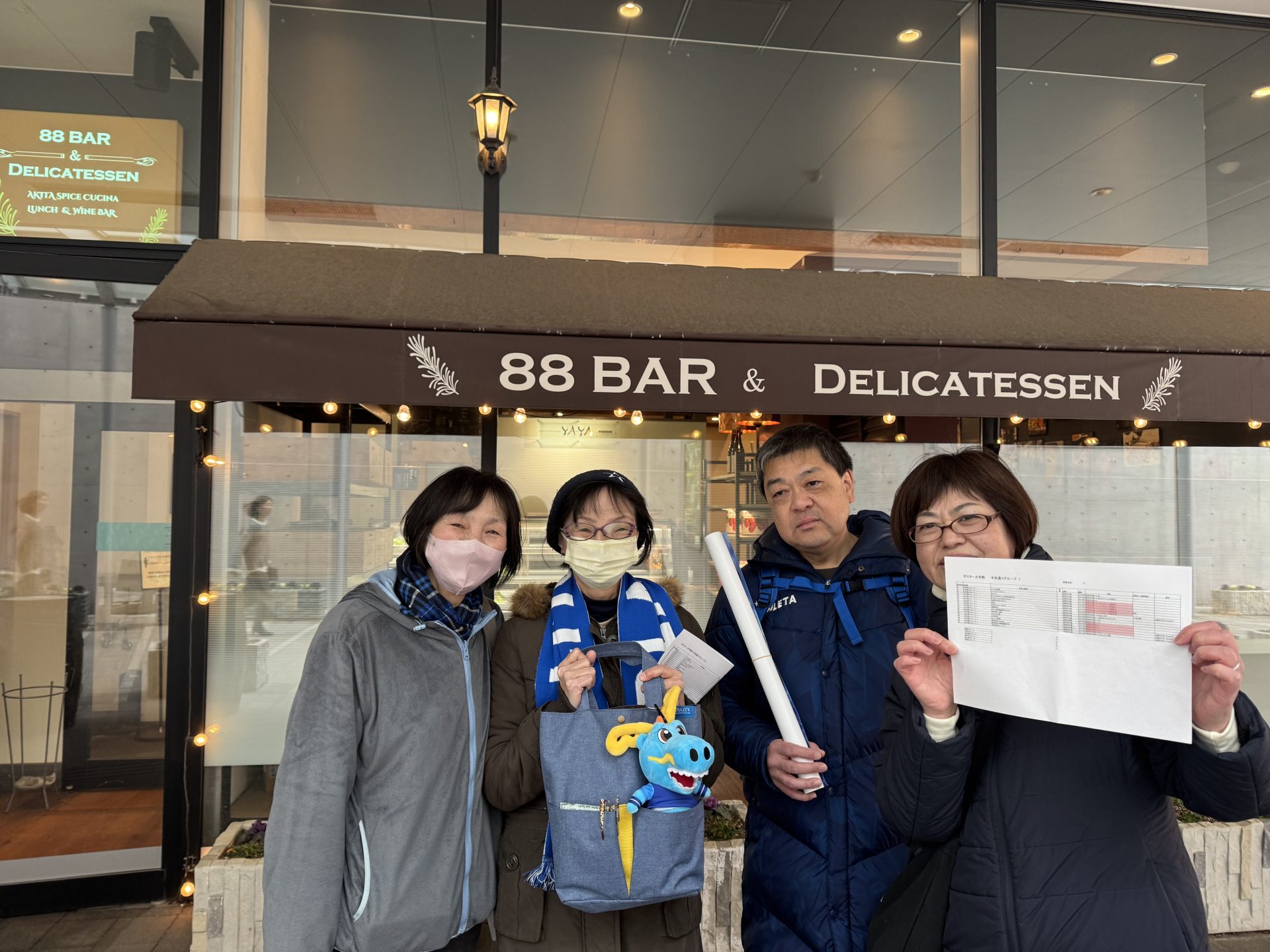 この時期では珍しく朗らかな気候の中、ファン・サポーターの皆さまと共に、2時間で約200枚のポスターを配布することができました。