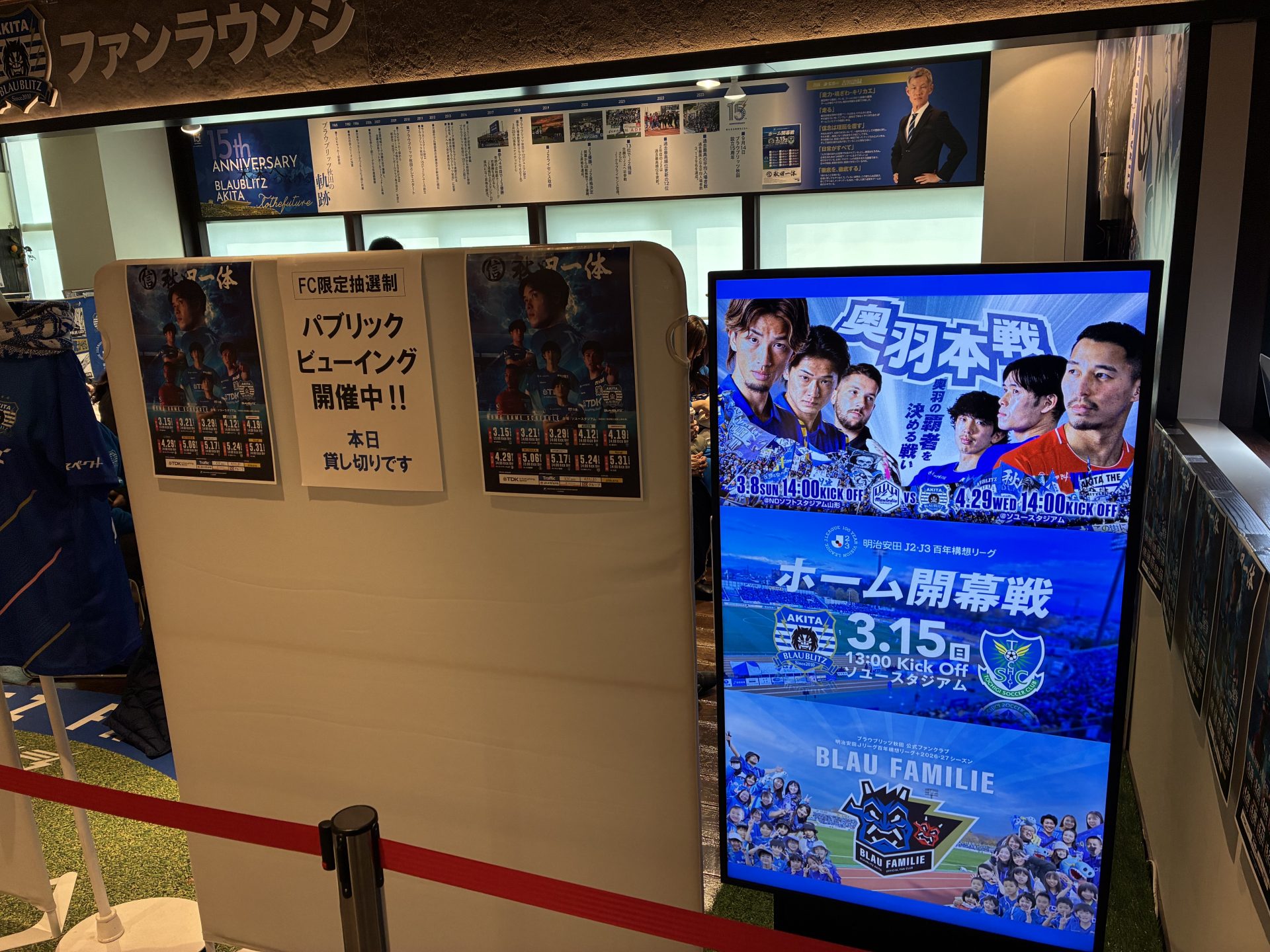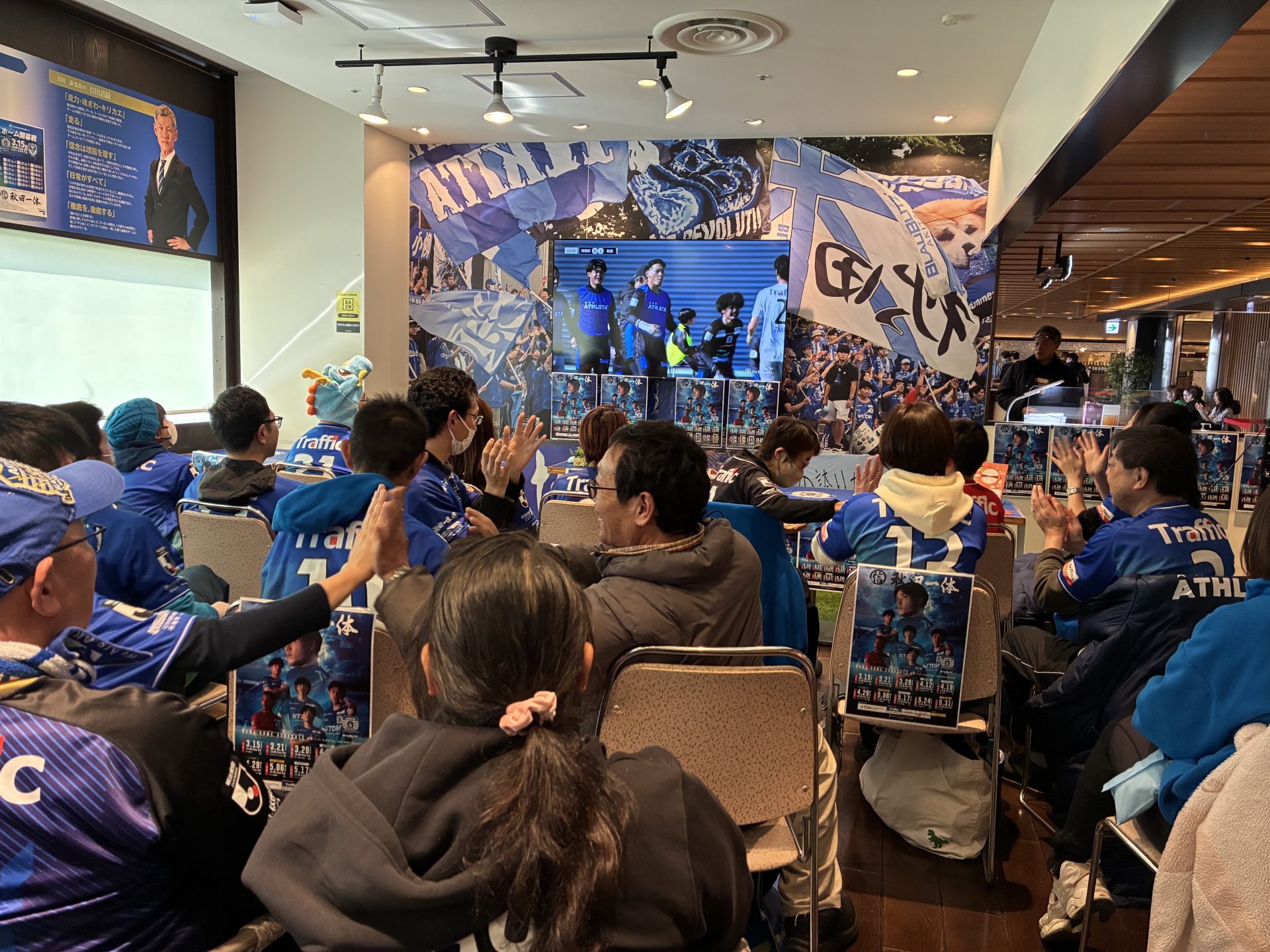 ポスター配布終了後は、トピコ3Fファンラウンジにて、明治安田J2・J3百年構想リーグ 地域リーグラウンド第3節 SC相模原vsブラウブリッツ秋田のパブリックビューイングを実施しました。
