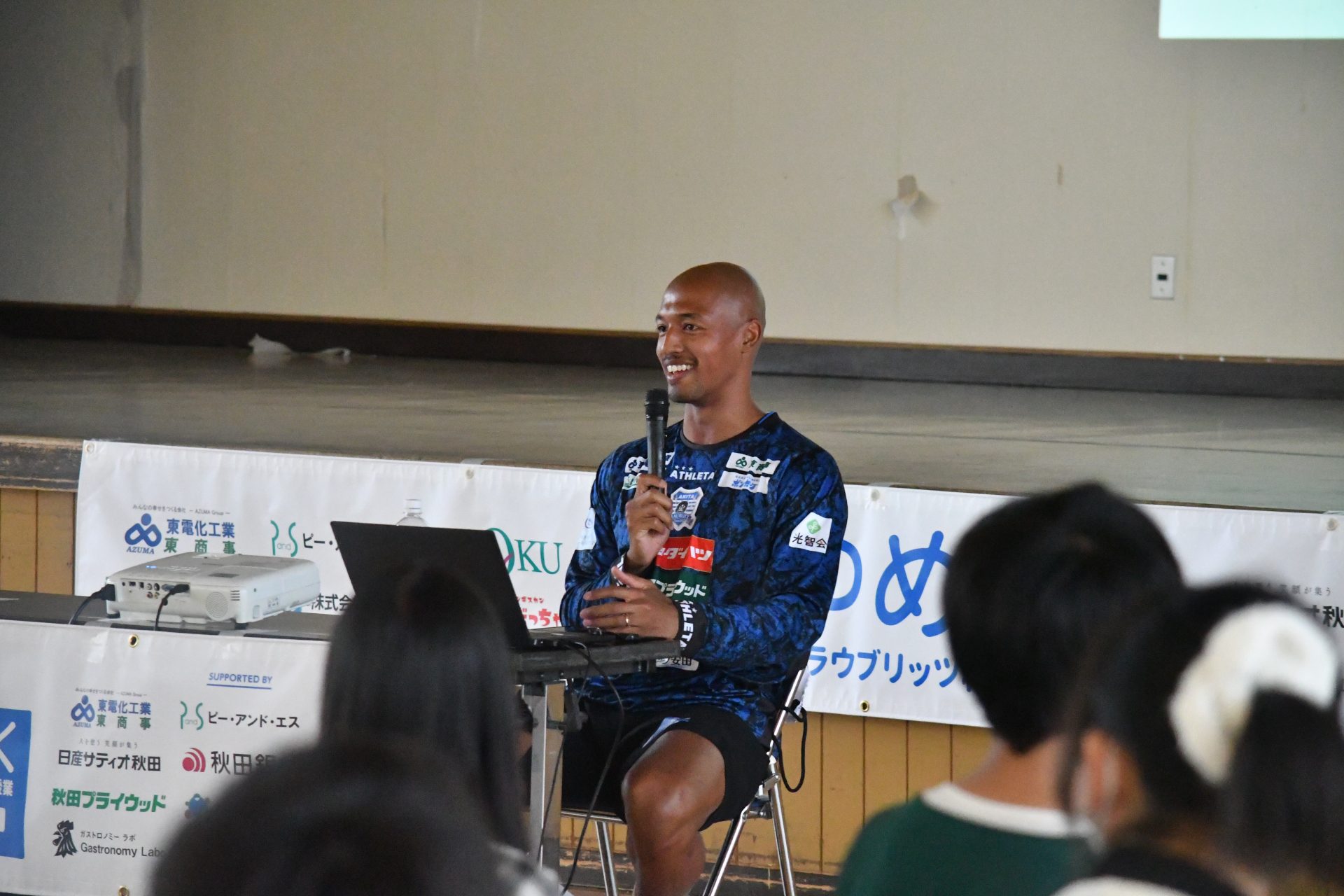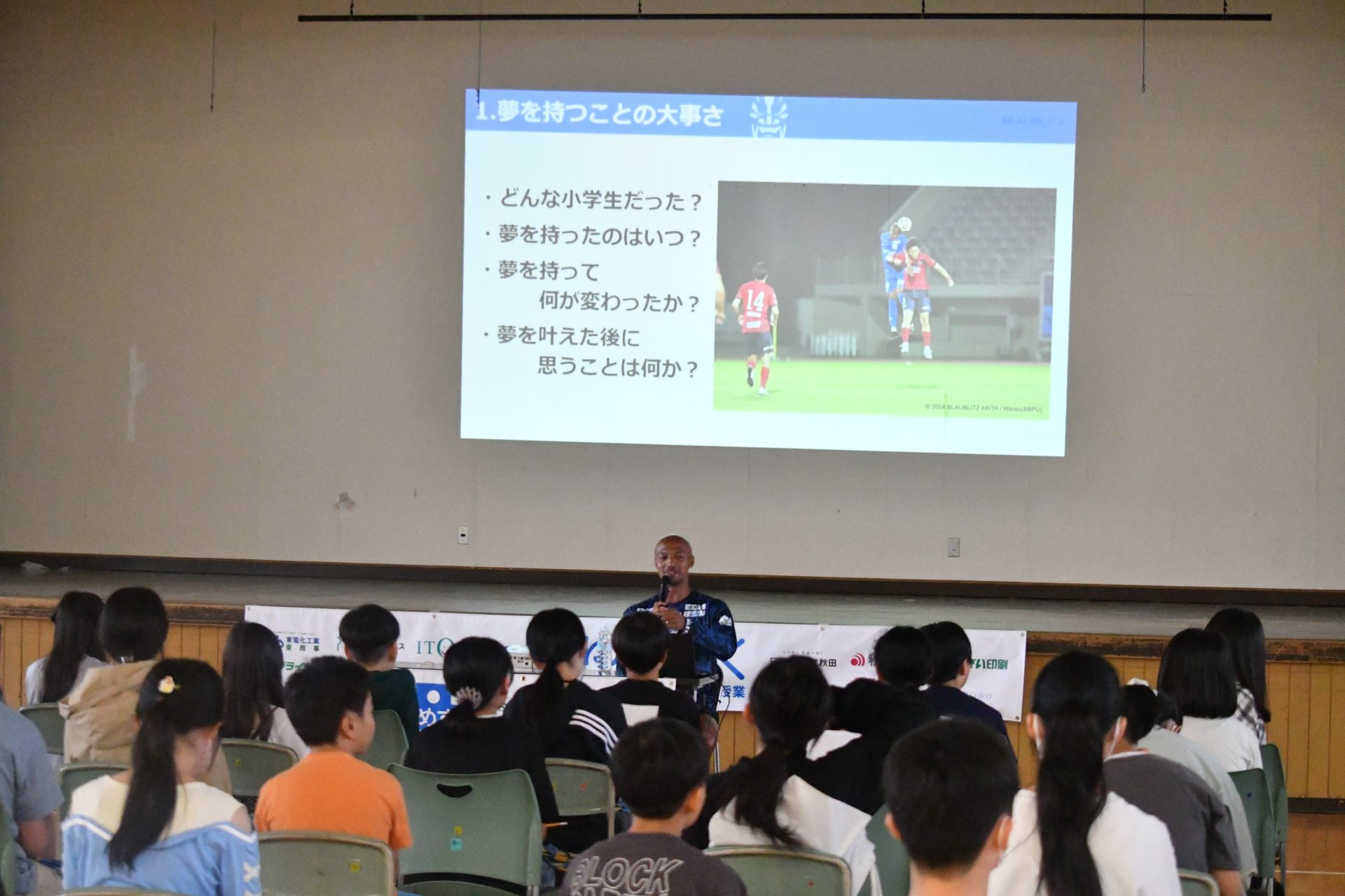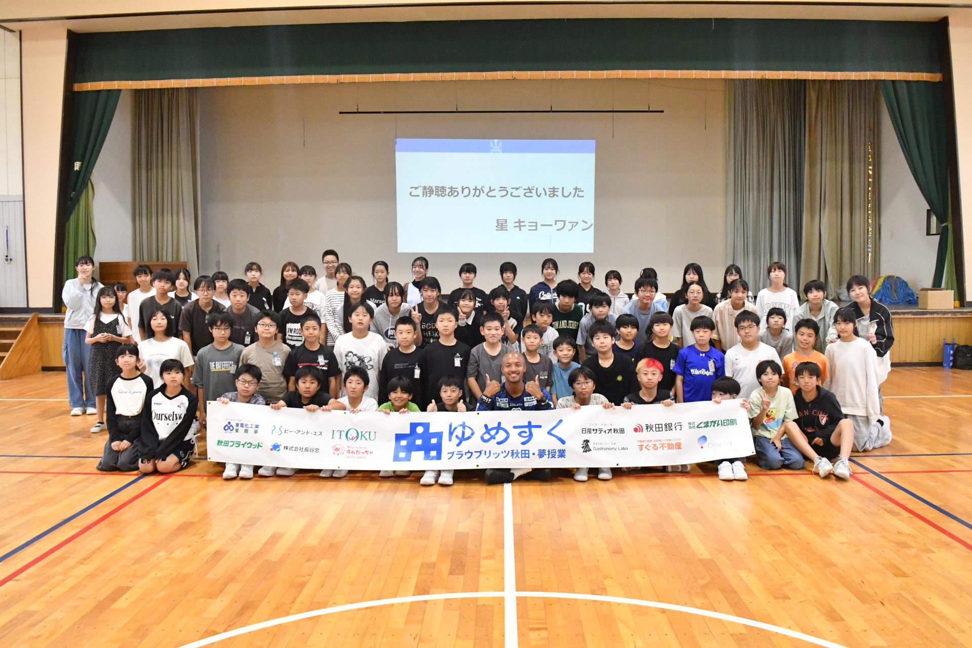 9月25日(木)、秋田市立東小学校の6年生79名を対象に、DF39 星キョーワァン選手が「ゆめすく」を行いました。