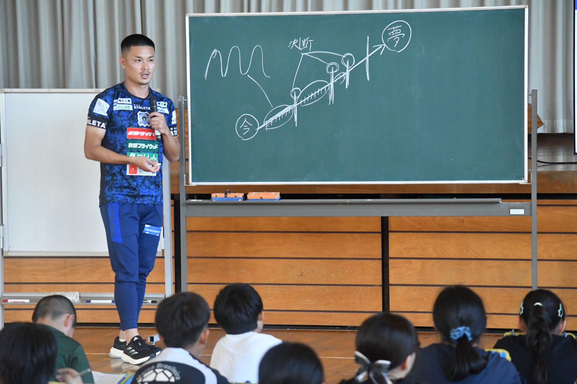 9月26日(金)、秋田市立旭北小学校の6年生37名を対象に、MF14 大石竜平選手が「ゆめすく」を行いました。