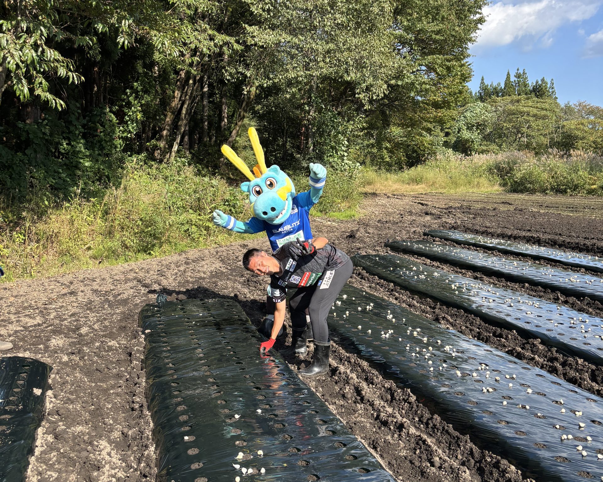 10月3日(金)、トレーニングユニフォームスポンサーの秋田県信用組合さまと、株式会社しらかみファーマーズさまにて、毎年恒例となっている、にんにくの植え付け支援活動を行いました。