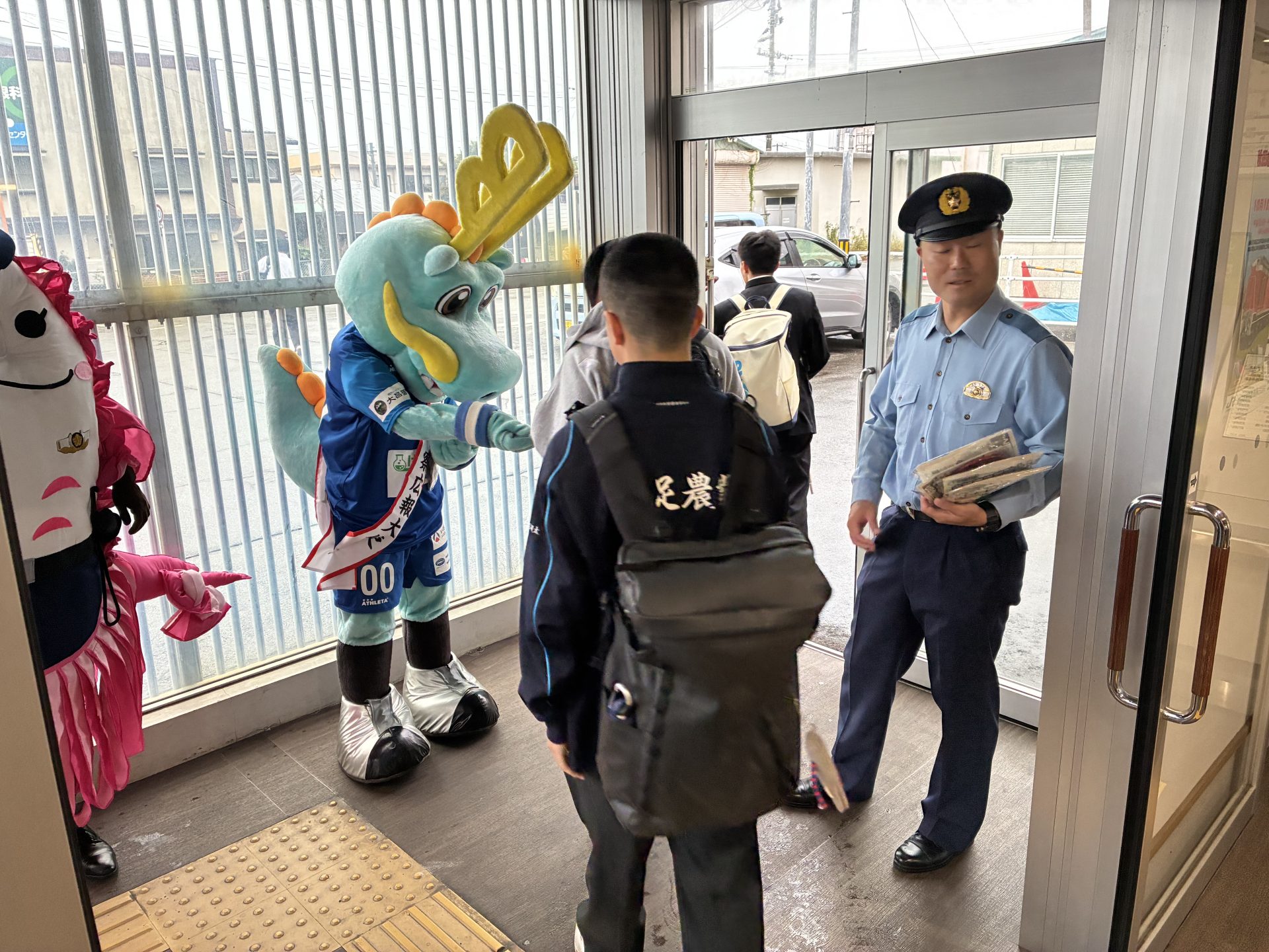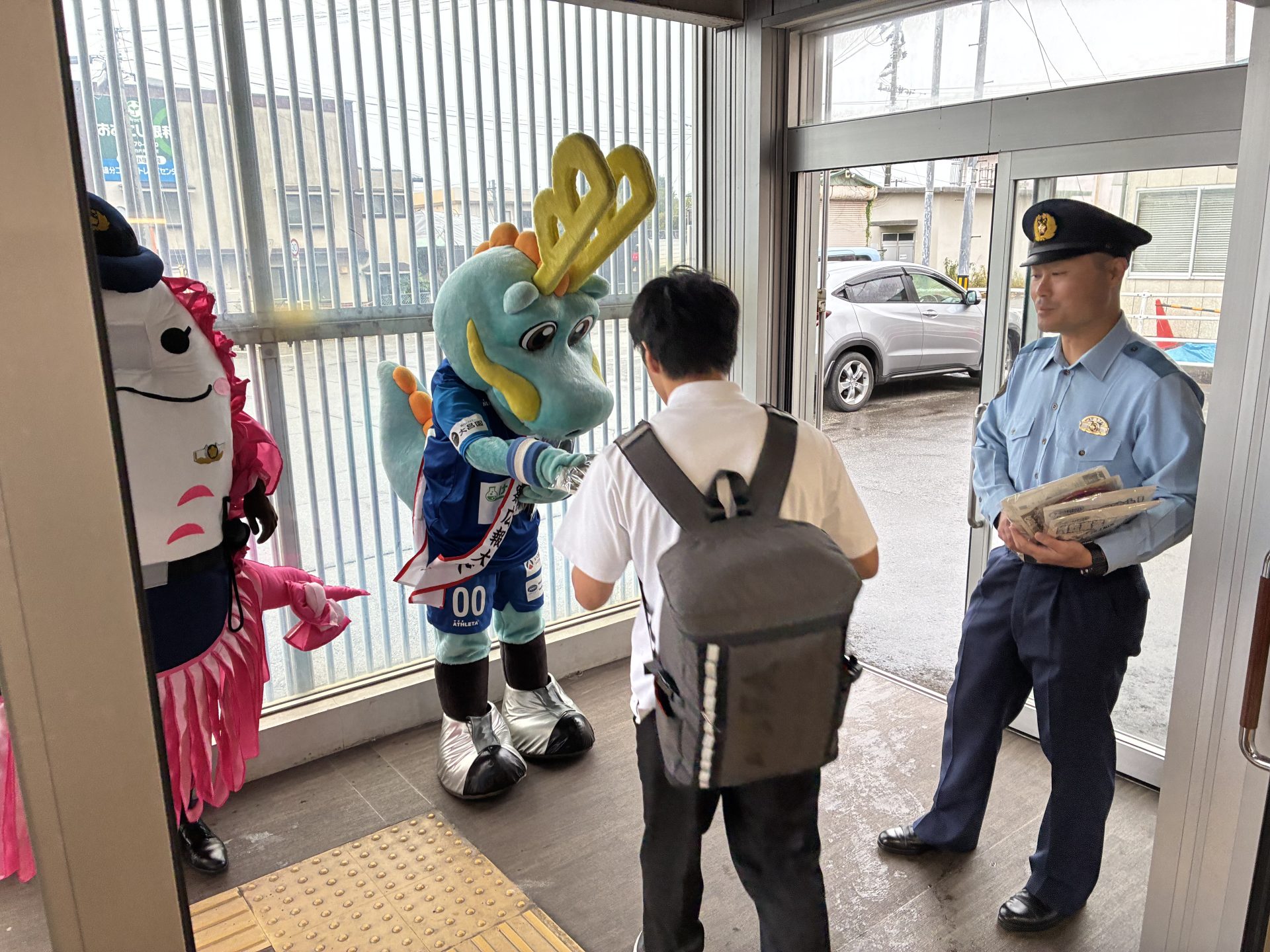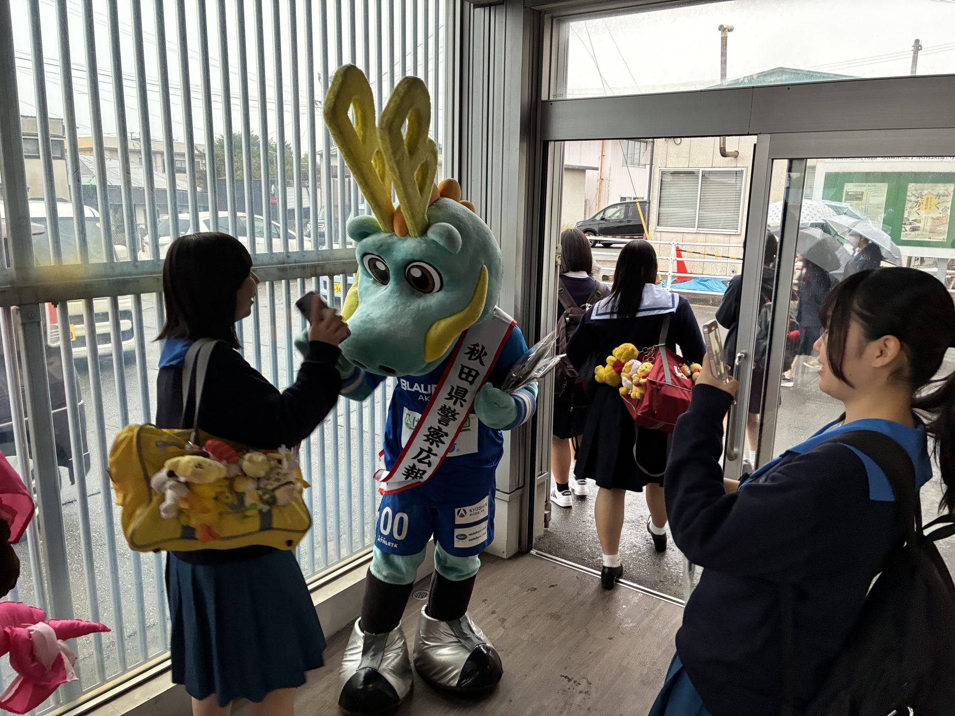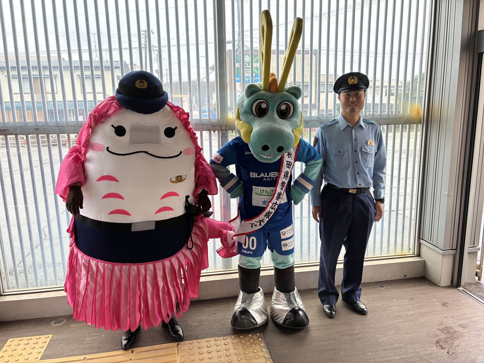 10月16日(木)、JR追分駅にて行われた、秋田臨港警察署「ロックパトロール」に秋田県警広報大使を務めるブラウゴンが参加しました。