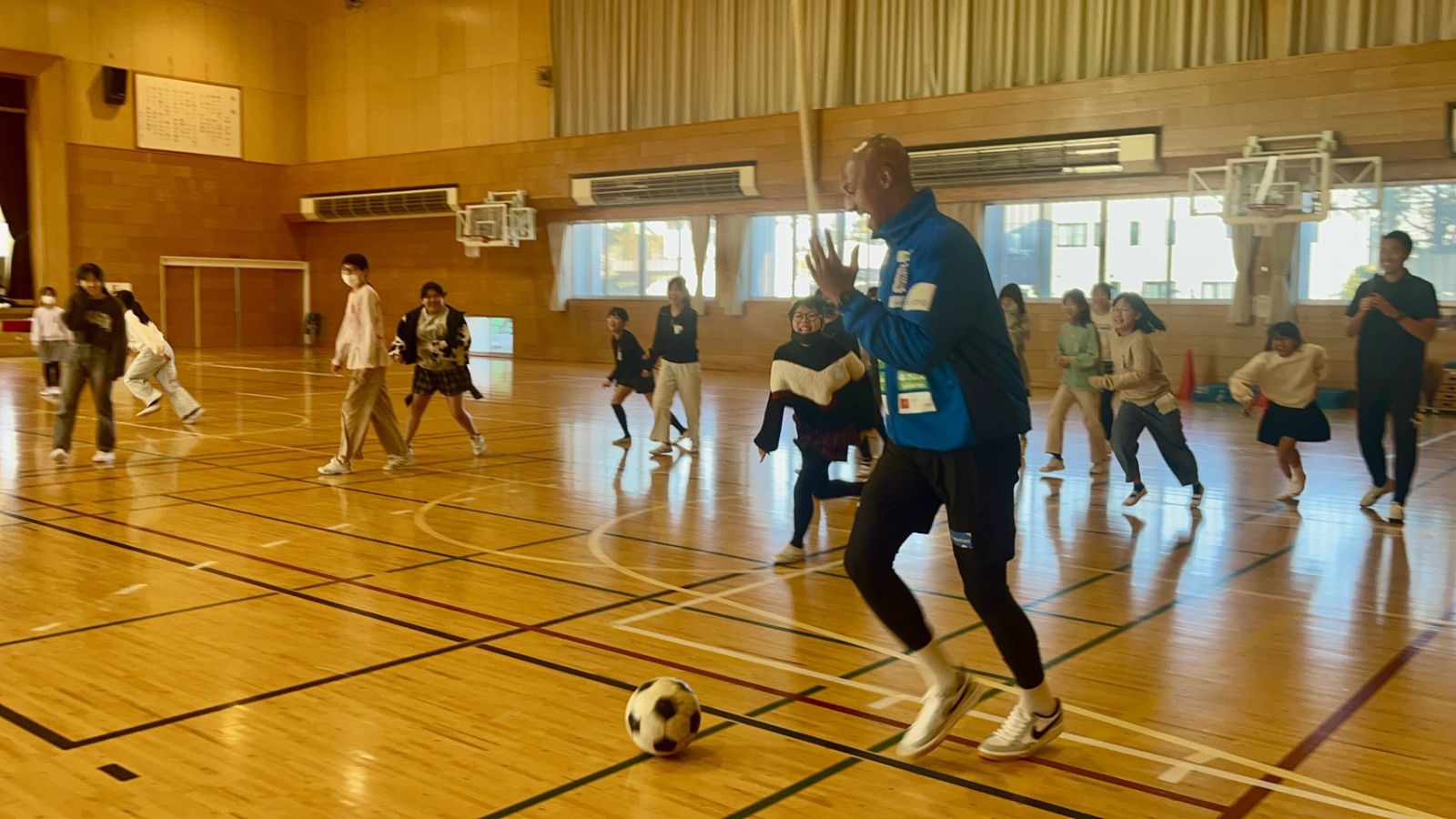 夢の講話ではメモをしっかり取りながら話をじっくりと聞いていた生徒たちでしたが、サッカーをするとなると、切り替えが素晴らしく、生徒たち全員が積極的にボールに触れてサッカーを楽しんでいました。