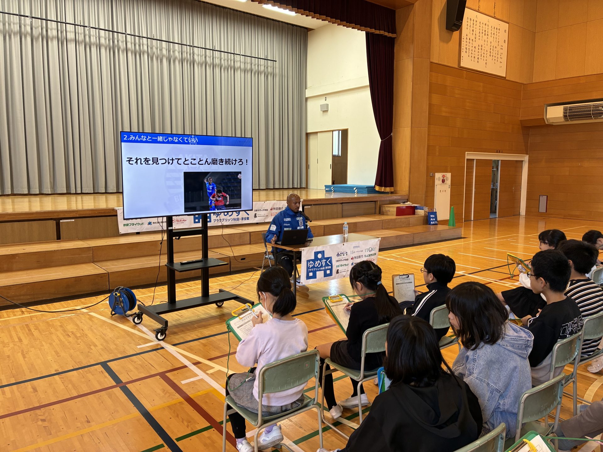 10月24日(金)、秋田市立旭南小学校の6年生54名を対象に、DF39 星キョーワァン選手が「ゆめすく」を行いました。