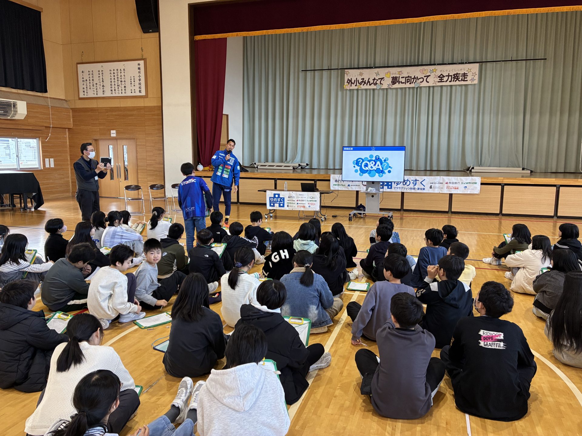 11月14日(金)、秋田市立外旭川小学校の6年生76名を対象に、GK1 山田元気選手が「ゆめすく」を行いました。