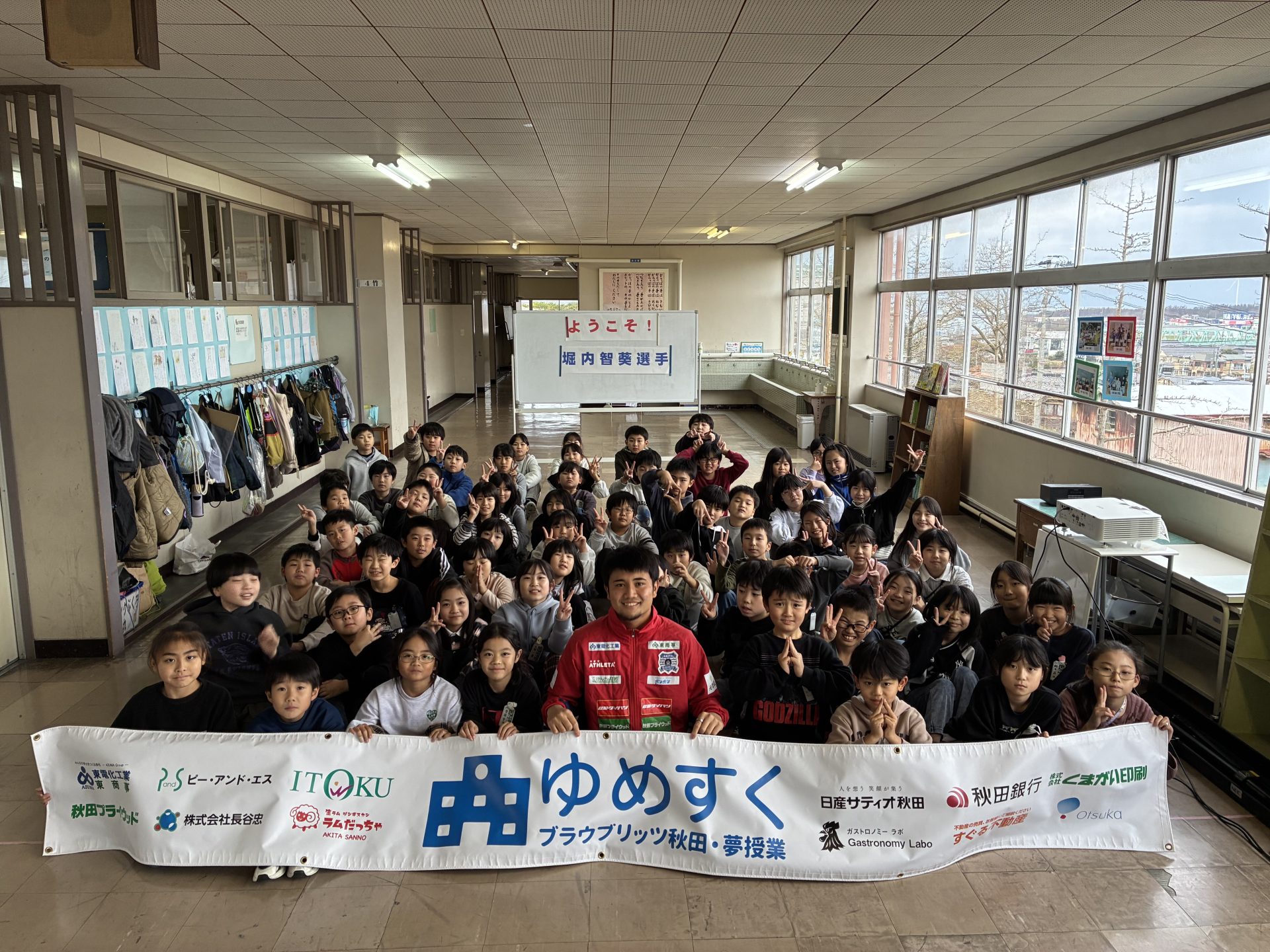 ブラウブリッツ秋田が、ホームタウン活動の一環として実施している「ゆめすく」は、ブラウブリッツ秋田の選手などが学校を訪問し、プロサッカー選手という夢を叶えた経緯を踏まえ「夢を持つことの大切さ」「夢を追いかけることの重要性」を伝える活動です。