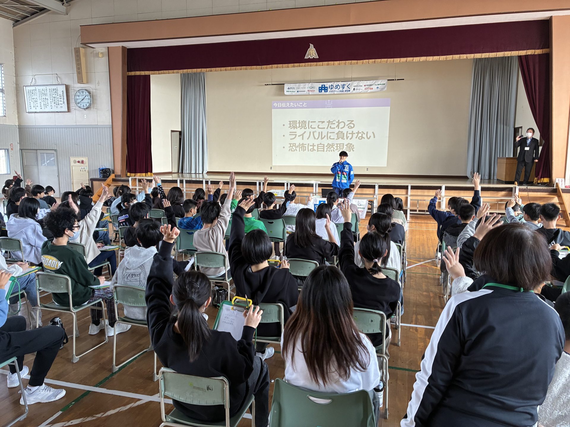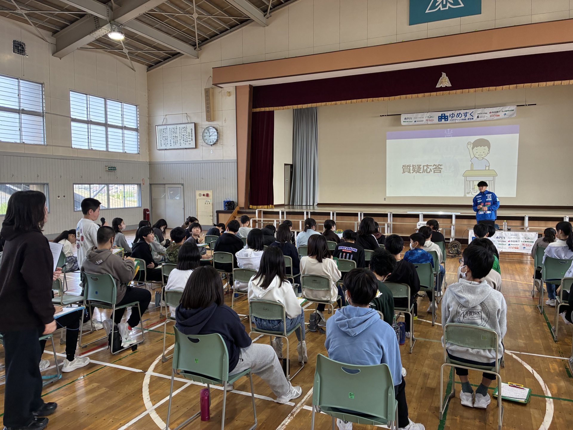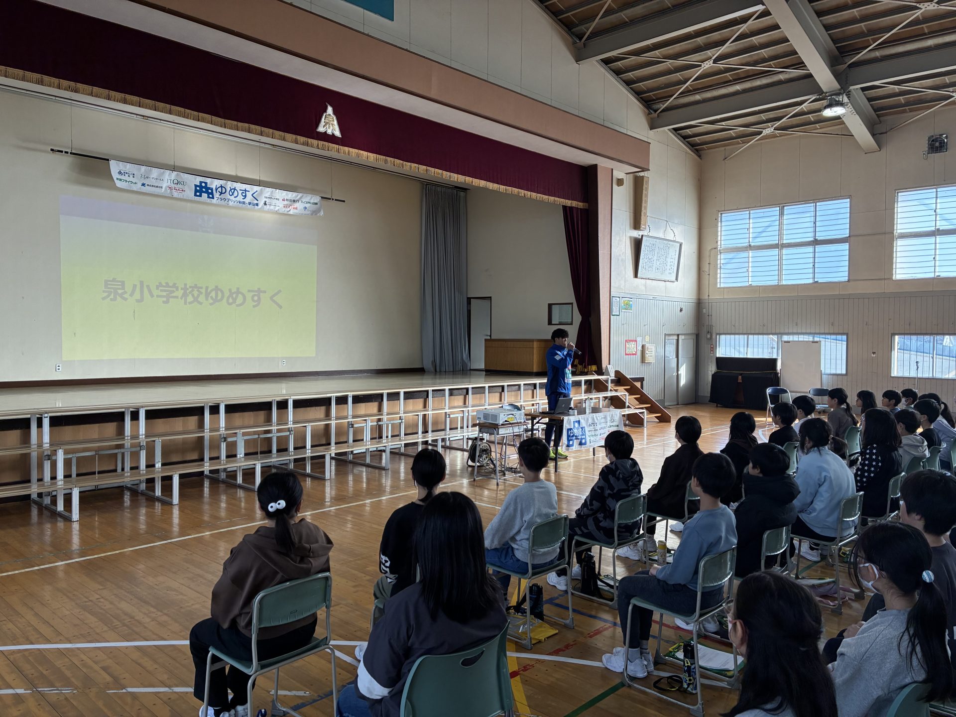 ブラウブリッツ秋田が、ホームタウン活動の一環として実施している「ゆめすく」は、ブラウブリッツ秋田の選手などが学校を訪問し、プロサッカー選手という夢を叶えた経緯を踏まえ「夢を持つことの大切さ」「夢を追いかけることの重要性」を伝える活動です。