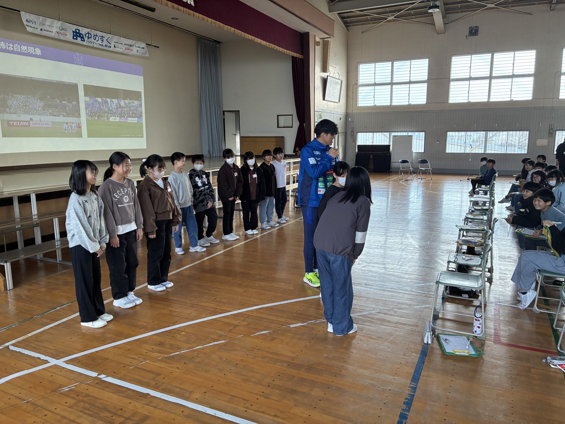11月26日(水)、秋田市立泉小学校の6年生78名を対象に、FW11 梶谷政仁選手が「ゆめすく」を行いました。