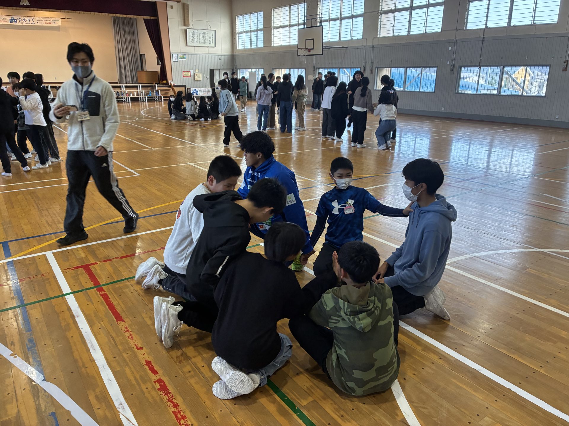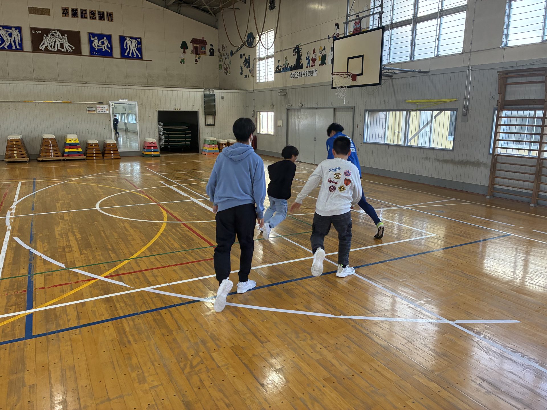 まずは全員で仲間集め競争をして、児童たちと触れ合いながら身体を温めました。
