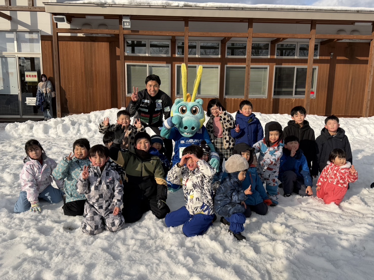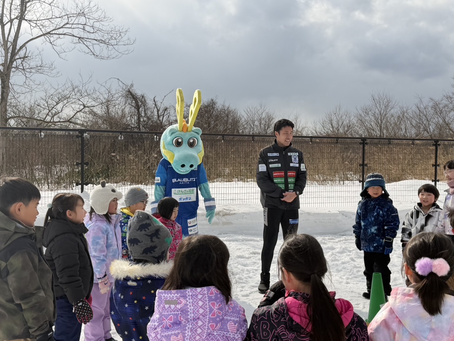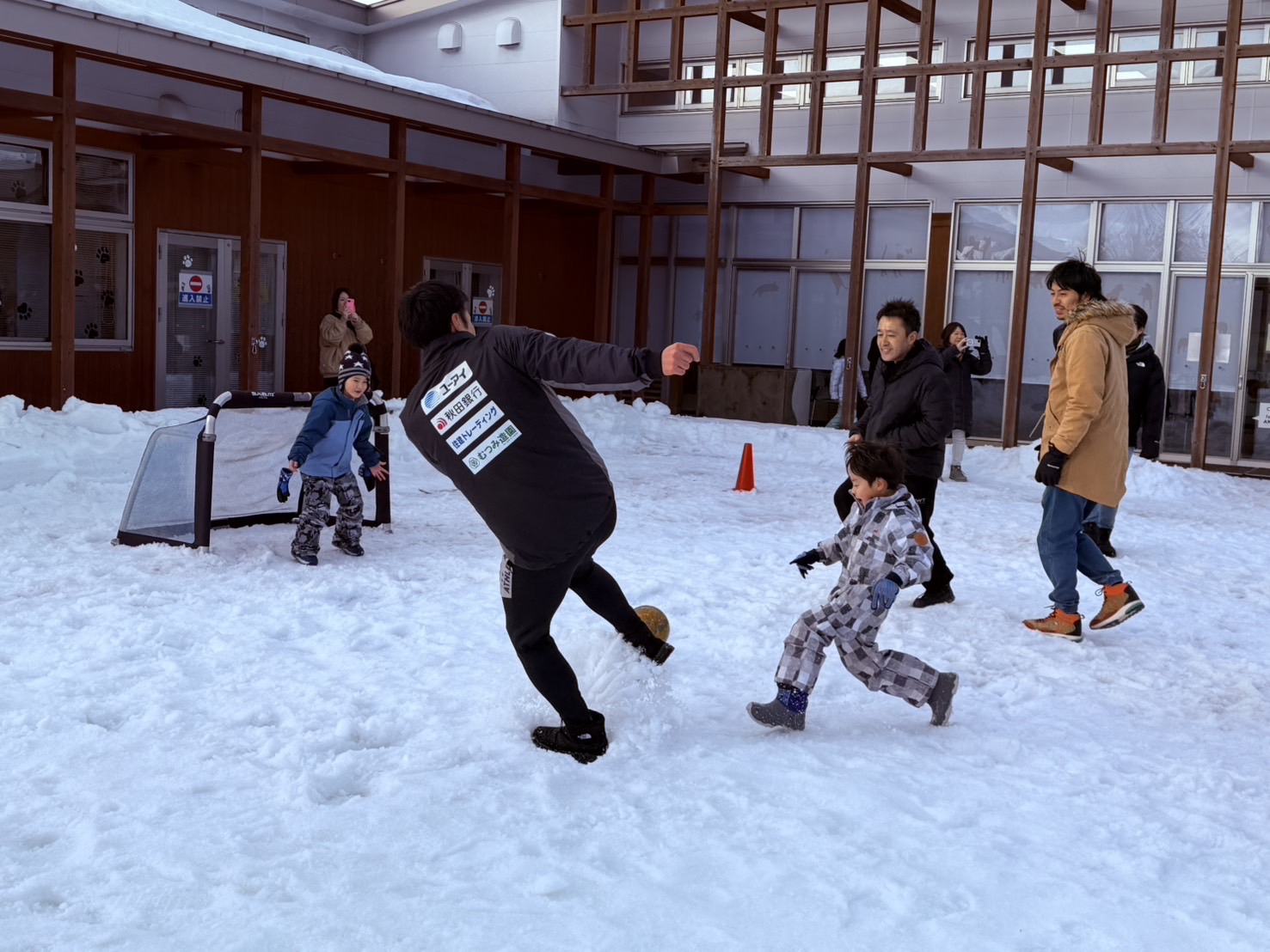 「ワンニャピアあきた 冬フェスタ」では毎年雪上でのサッカー教室を実施しており、今回も雪上サッカー教室を開催しました。