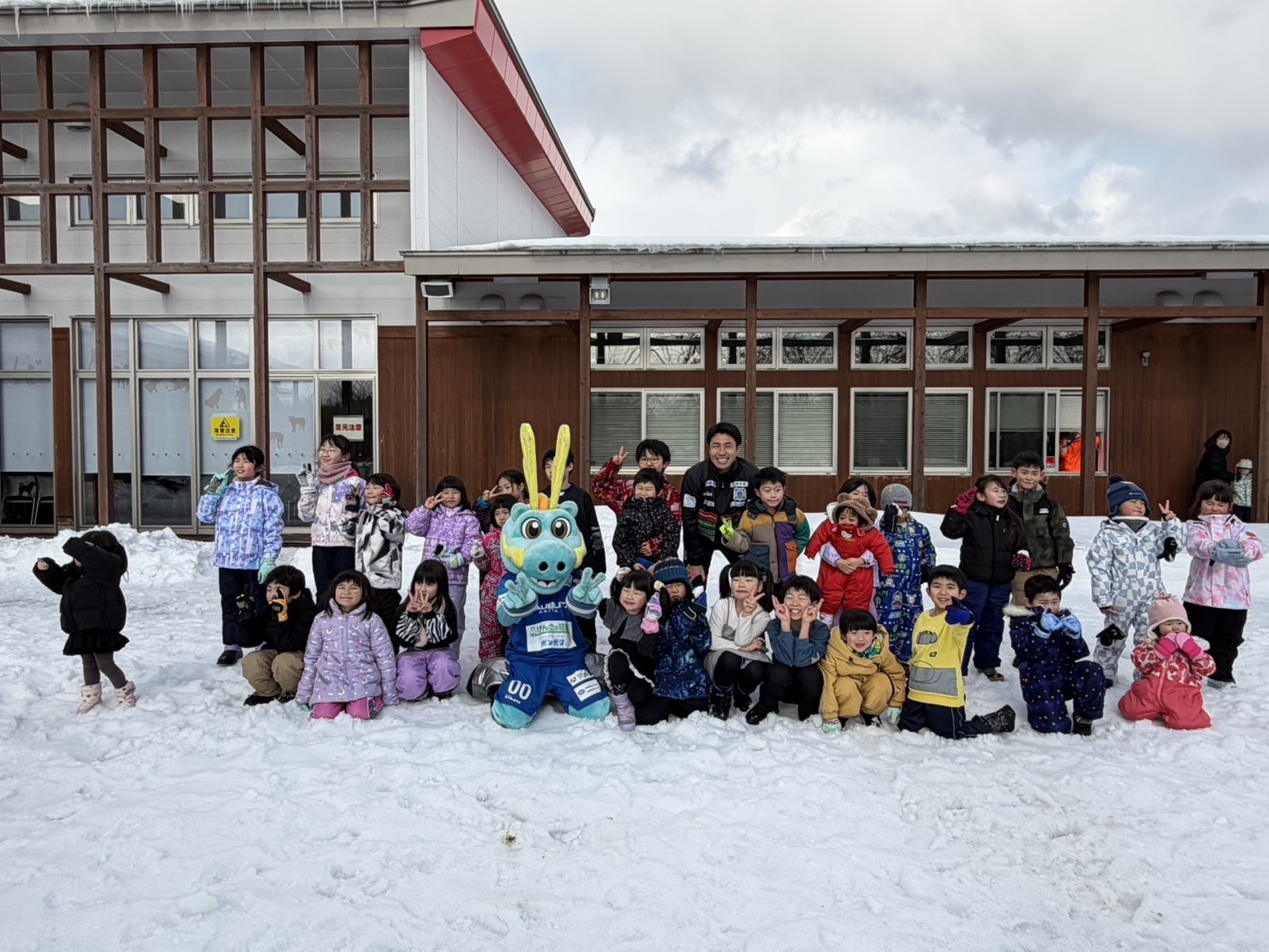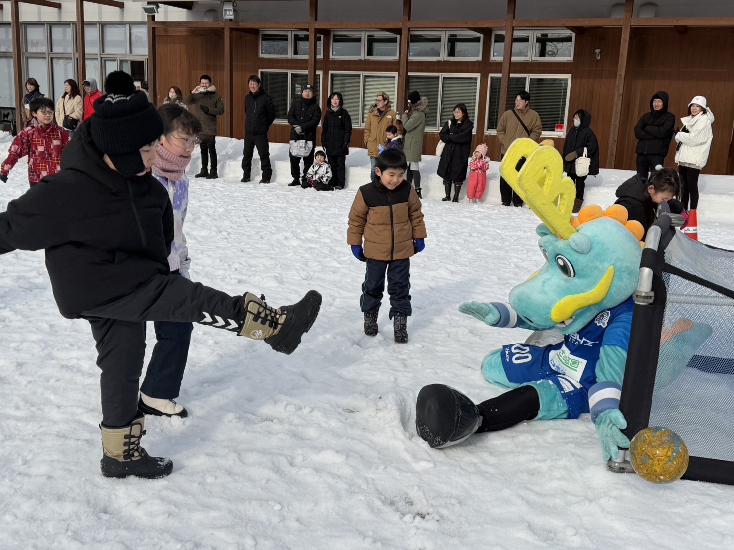 ボールを使った「だるまさんがころんだ」やドリブル交換、サッカーの試合など、短い時間ながらも、参加した子どもたちは雪上でのサッカーを楽しんでいました。最後は子どもたちvs大人たちで試合を行い、非常に白熱した試合となりました。子どもたちはもちろん、大人の方々も思いっきり楽しめた雪上サッカー教室になりました。