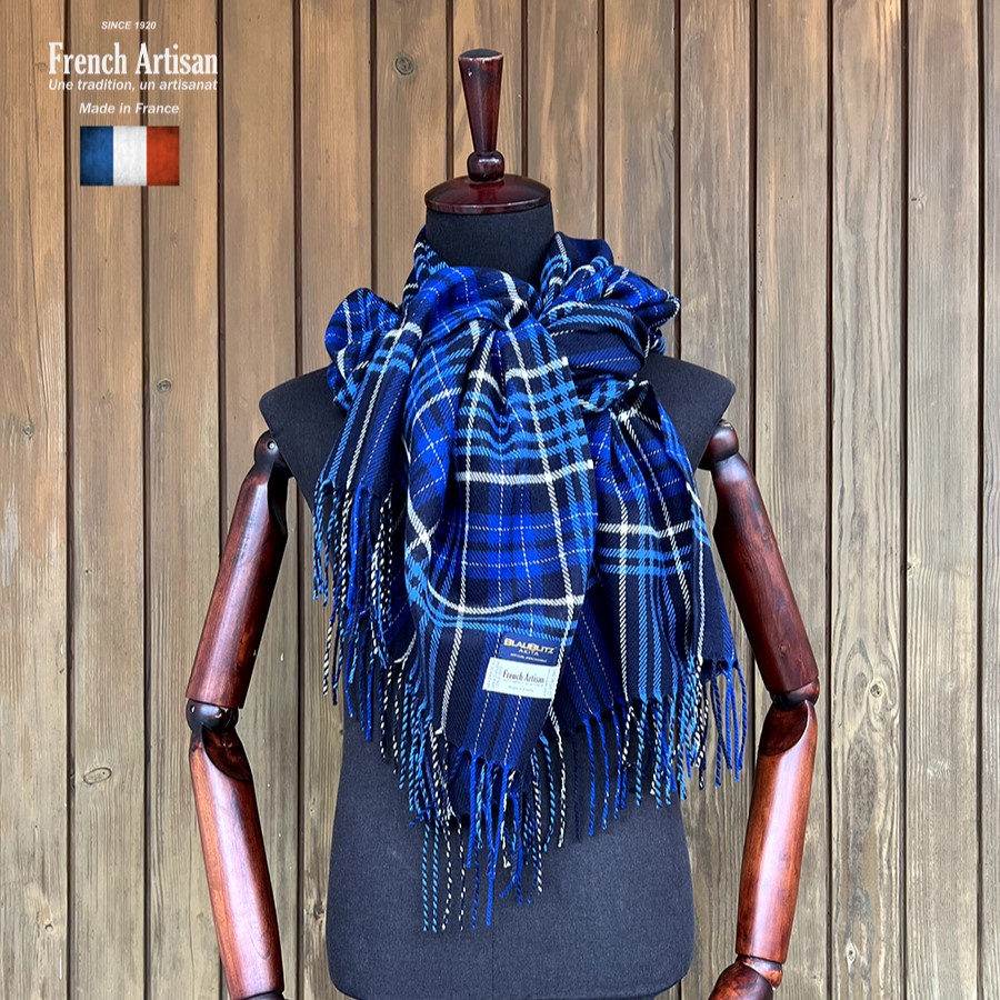 フランスの職人が伝統的な織機で織り上げた、チェックマフラー。