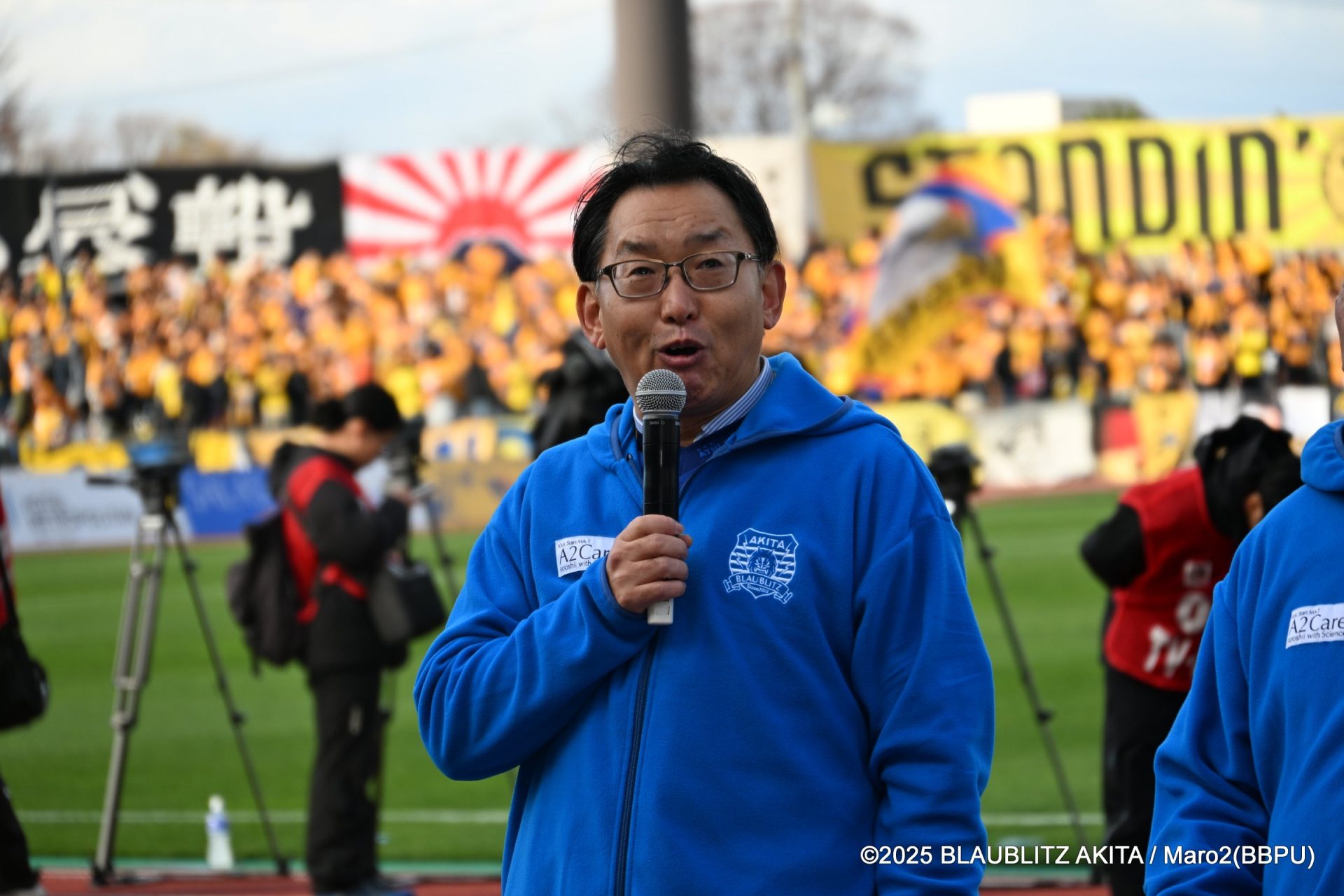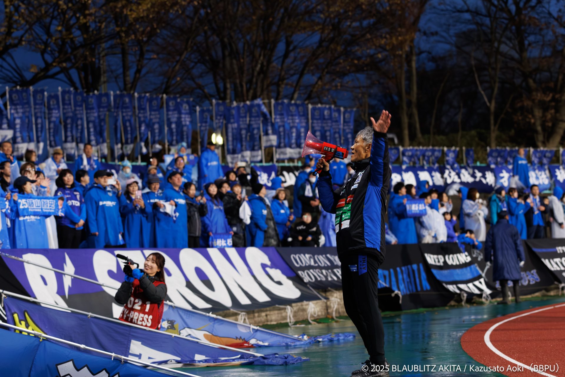 人口減少率が全国1位の秋田にとって、この街から去らずに、この街には熱いものがある、こんな素晴らしい街があるんだ、こんな戦いが見れるんだ、という思いに対する責任、誇り、ホームで戦える喜び、それを選手たちは背負って戦ってくれました。