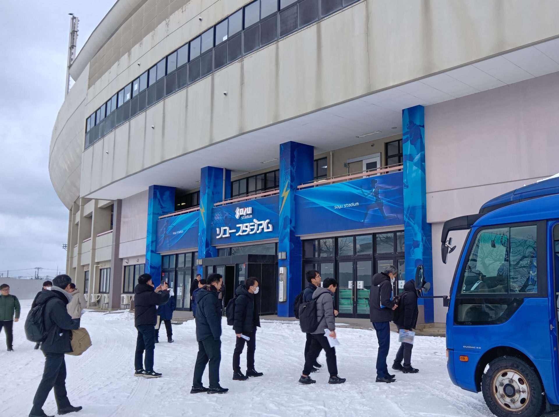 初日の1月29日(木)は秋田県庁にて事例発表や講演が行われ、2日目となる1月30日(金)はソユースタジアムおよびクラブハウスの説明・見学にブラウブリッツ秋田が協力をさせていただき、約50名の皆様にご参加いただきました。