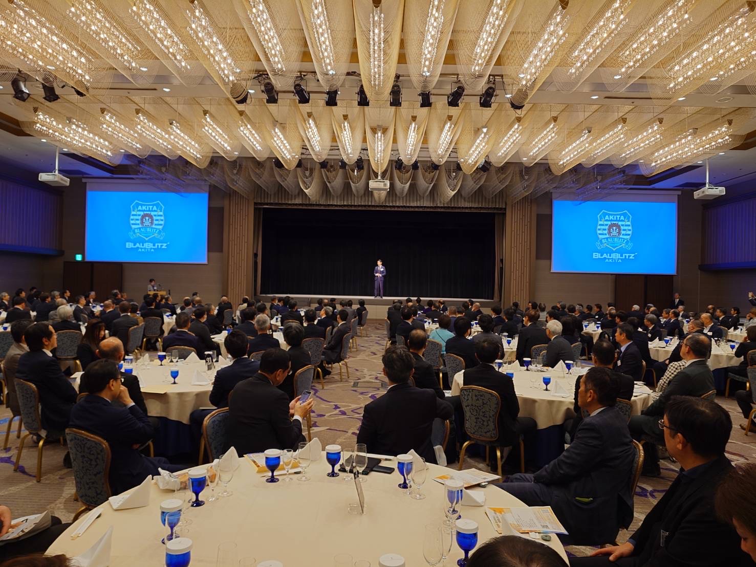 当日は、クラブを代表して岩瀬が登壇する機会をいただき、少子化や高齢化が進む秋田県におけるクラブが担う意義や役割、地域経済にも大きな波及効果をもたらした昨年のホーム最終戦での仙台戦についてなどのスポーツ文化の重要性についてお話しさせていただきました。