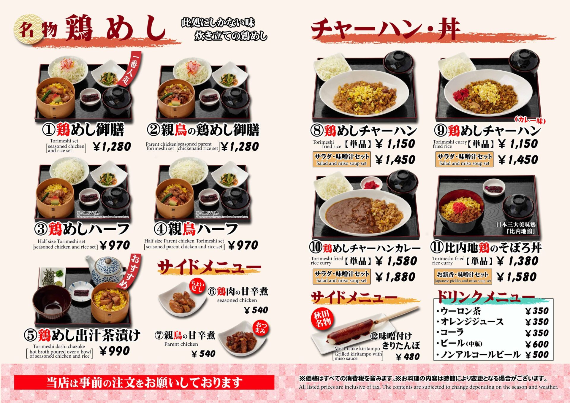 この度、11月1日(土)より秋田駅トピコ3階 ブラウブリッツ秋田ファンラウンジ内に「鶏めしの花善 秋田トピコ店」がオープンしますのでお知らせいたします。