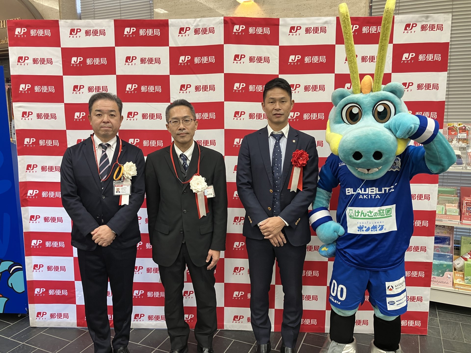 10月30日(木) 秋田中央郵便局で開催された「2026年用年賀はがき販売開始イベント」に、ブラウブリッツ秋田の岩瀬浩介代表取締役社長とブラウゴンが参加しました。