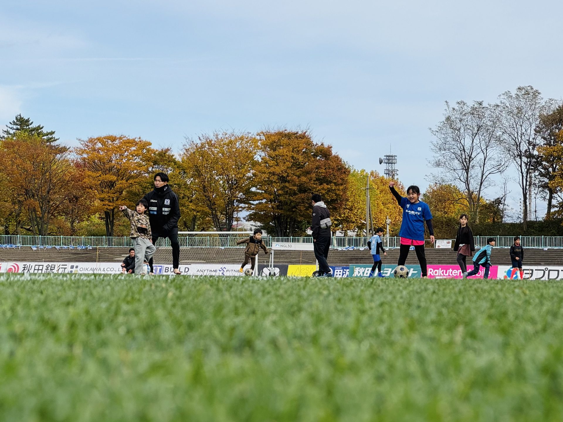 登下校や公園での遊び、スポーツ少年団の活動などにも制限がかかり、思いきり体を動かす機会が減っている現状を受け、クラブでは「未来を担う子どもたちに、少しでも明るく、楽しく、安心して運動できる場を届けたい」という想いのもと、秋田市スポーツ振興課のご協力を得てピッチを一般開放いたしました。