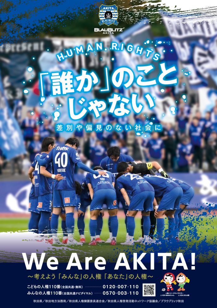 11月23日(日)開催の「2025 明治安田J2リーグ 第37節 クリーン・テクノロジー presents ブラウブリッツ秋田 vs ベガルタ仙台」にて、秋田県地方法務局とともに人権啓発活動を実施することとなりましたので、お知らせいたします。