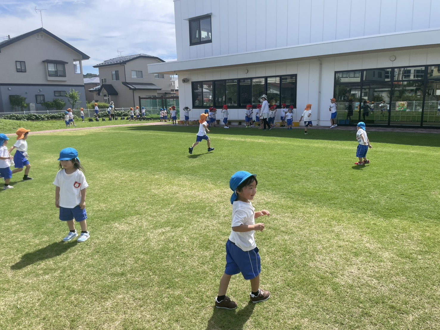 園庭に芝生があることで戸外遊びが増えるという研究結果もあり、園庭は子どもたちの心身の発達につながると考えられています。
