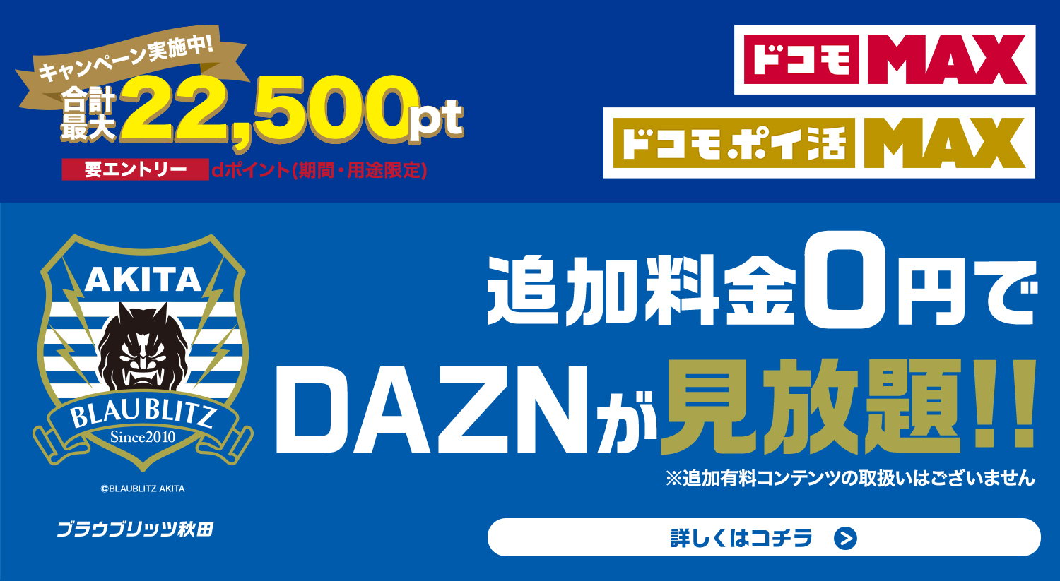 ブラウブリッツ秋田は、株式会社NTTドコモとの協業により、「ドコモ MAX」「ドコモ ポイ活 MAX」ご契約者様を対象としたキャンペーンを実施します。