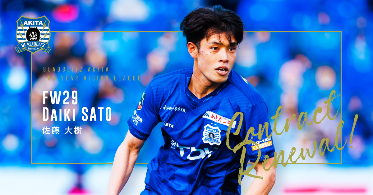 この度、FW29 佐藤大樹選手と契約を更新しましたので、お知らせいたします。
