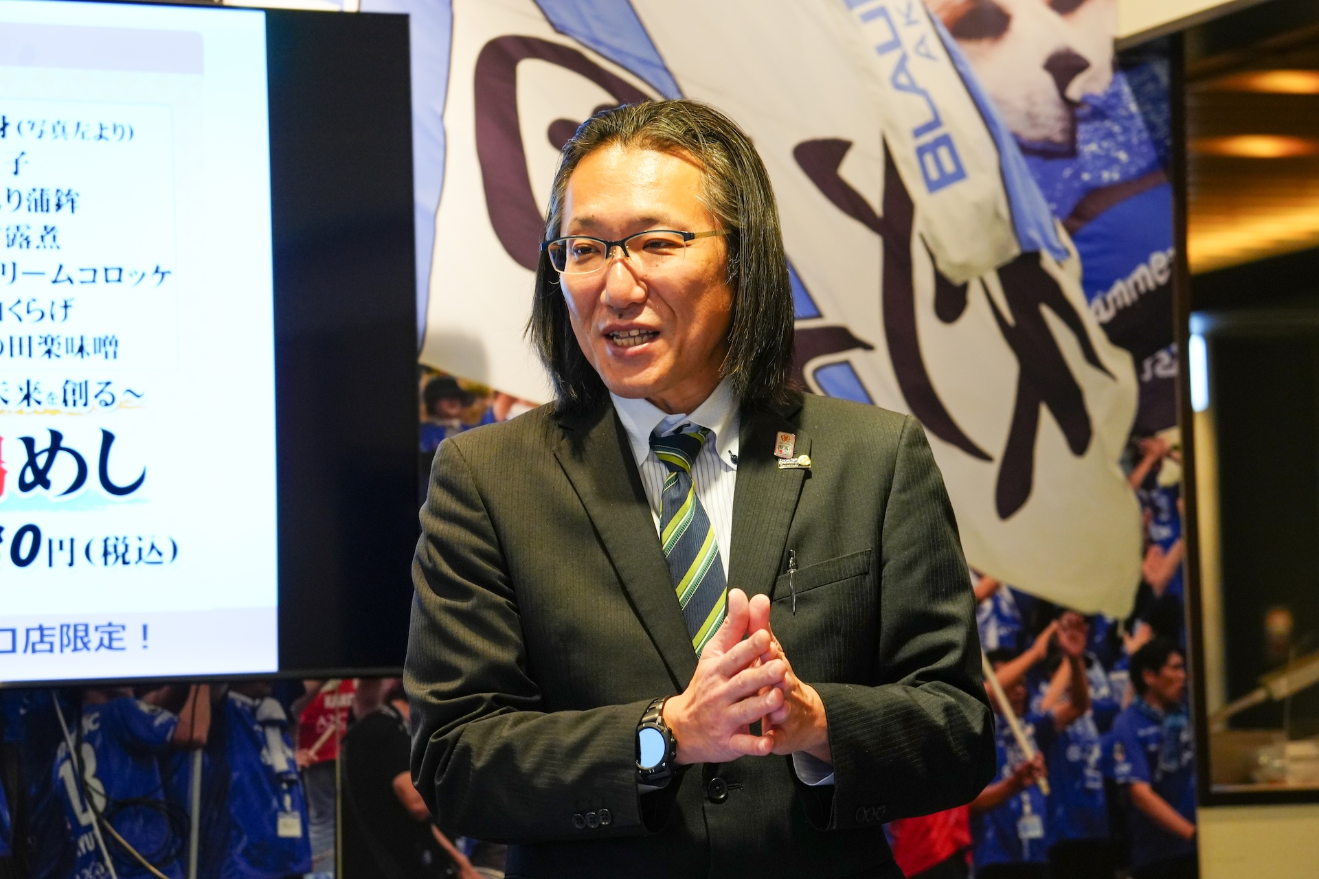 創業126年の花善様にこの名物の鶏めしを通じて、スタジアム整備の寄付金という形の取り組みを始めていただいたことに、心からクラブを代表して感謝を申し上げます。