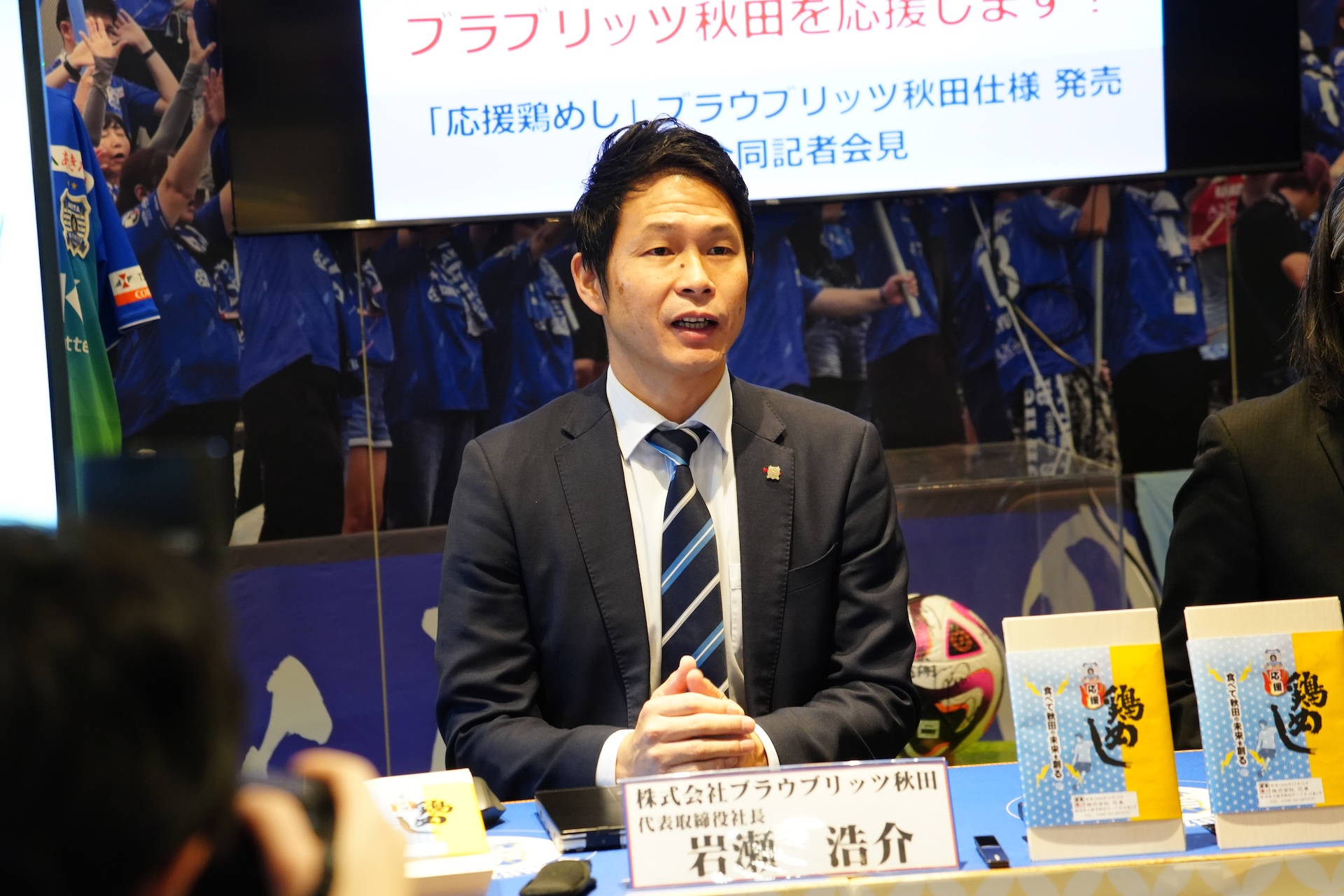 今回販売する商品は「応援鶏めし」ブラウブリッツ秋田仕様という商品名となります。ブラウブリッツ秋田に限らず、色々なスポーツ振興に今後私たちも協力できればと思っています。