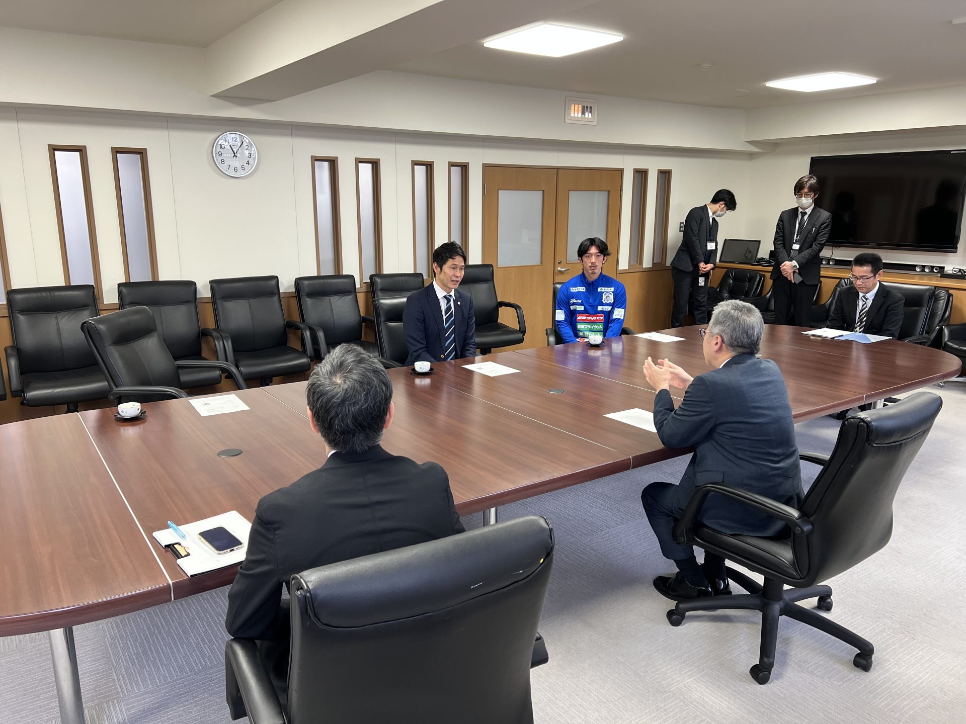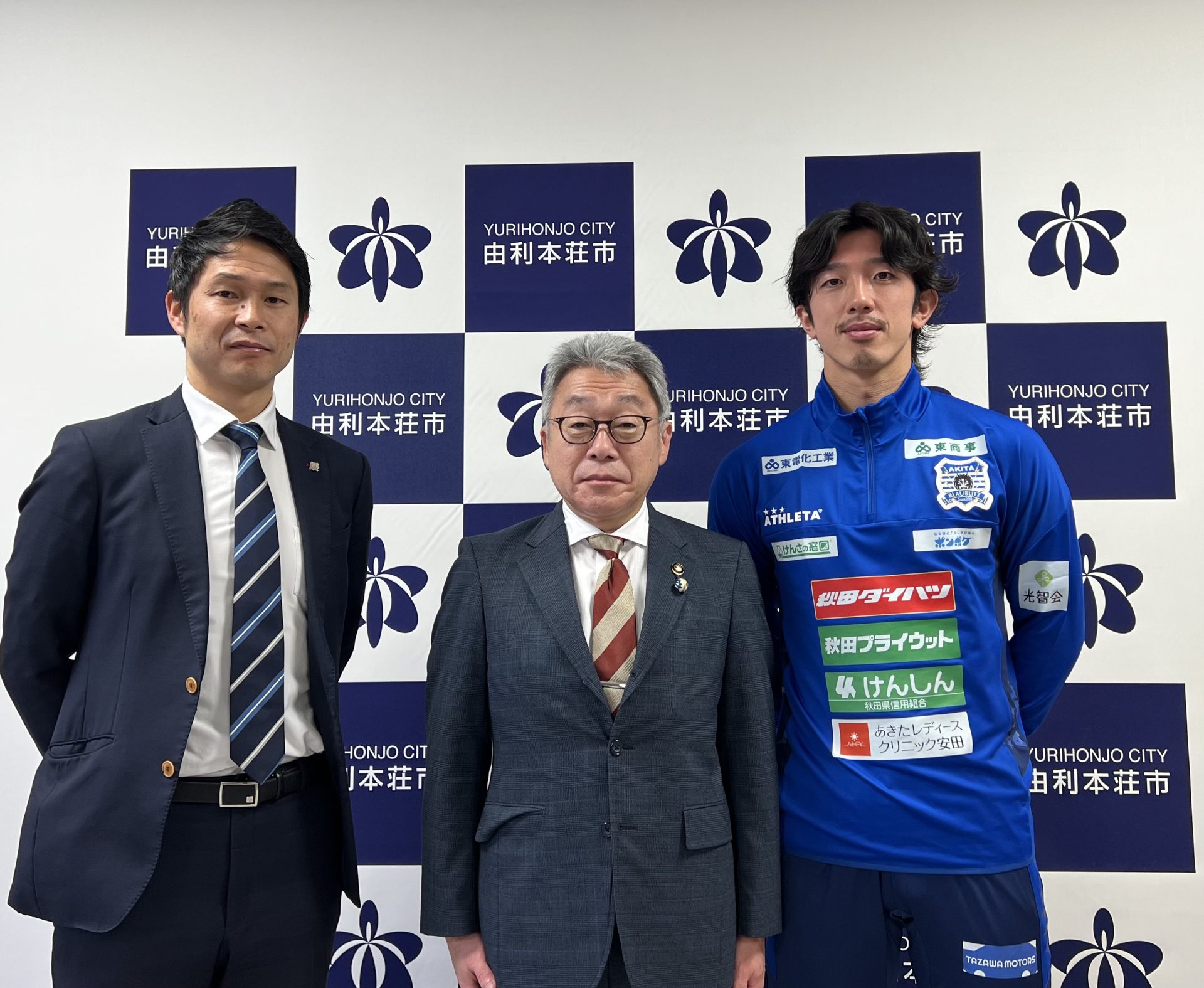 12月24日(水)、岩瀬浩介代表取締役社長、DF30飯泉涼矢が2025シーズン終了のご報告のため、湊貴信由利本荘市長に表敬訪問しました。