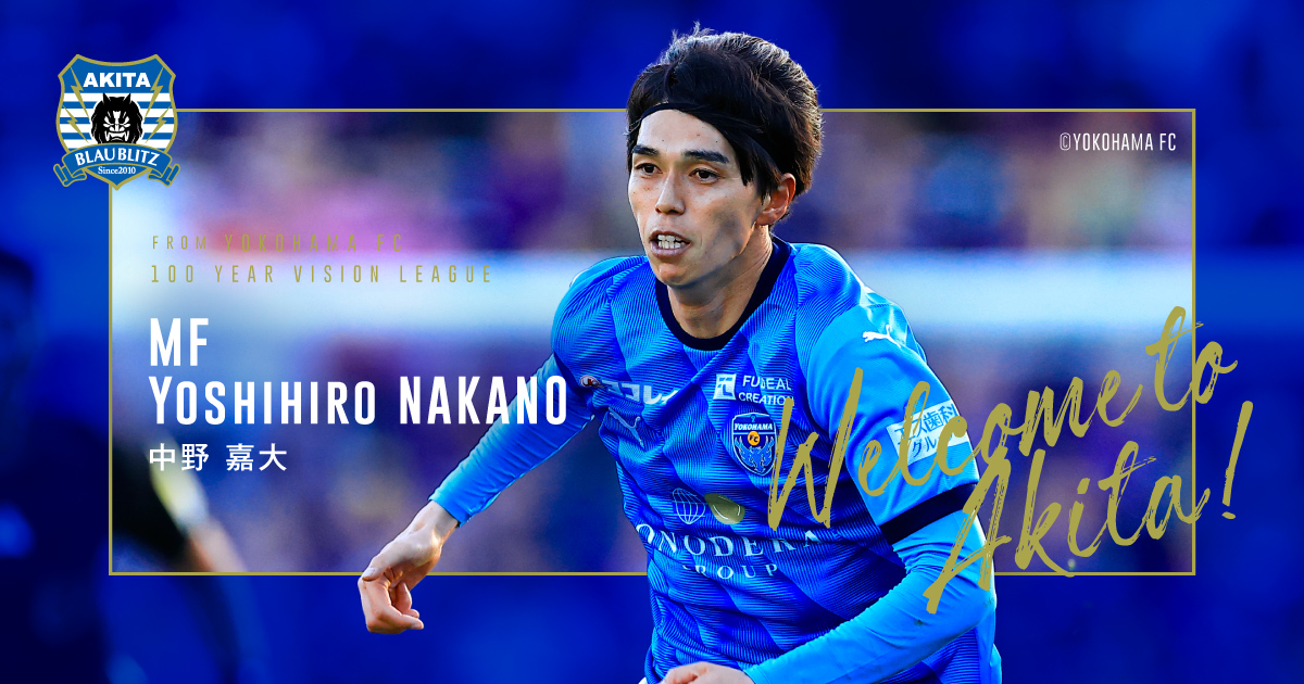 この度、横浜FCの中野嘉大選手がブラウブリッツ秋田へ完全移籍で加入することとなりましたので、お知らせいたします。