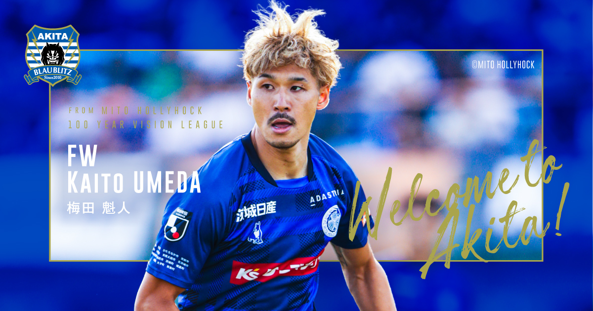 この度、水戸ホーリーホックの梅田魁人選手がブラウブリッツ秋田へ完全移籍で加入することとなりましたので、お知らせいたします。
