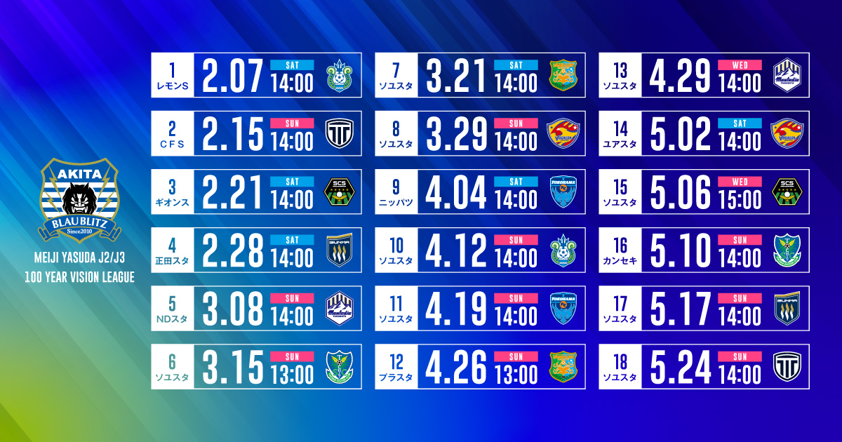 この度「明治安田J2・J3百年構想リーグ」の開催日程が決定しましたので、お知らせいたします。