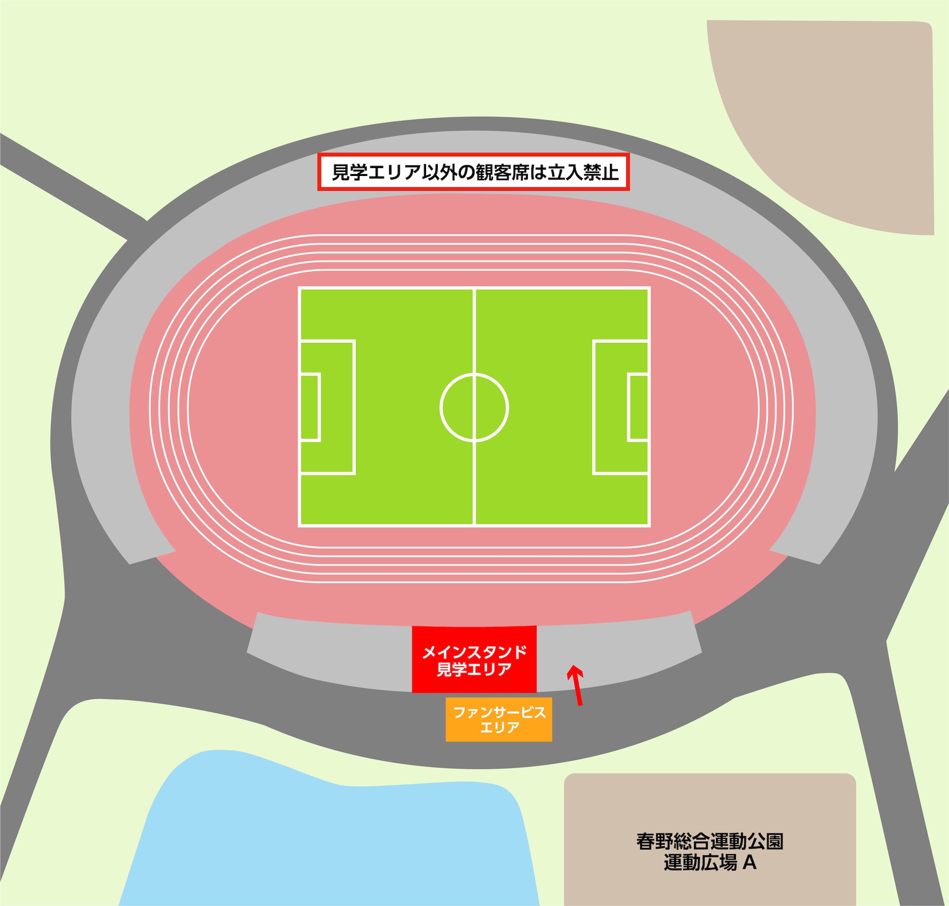※赤:見学エリア、※オレンジ:ファンサービスエリア