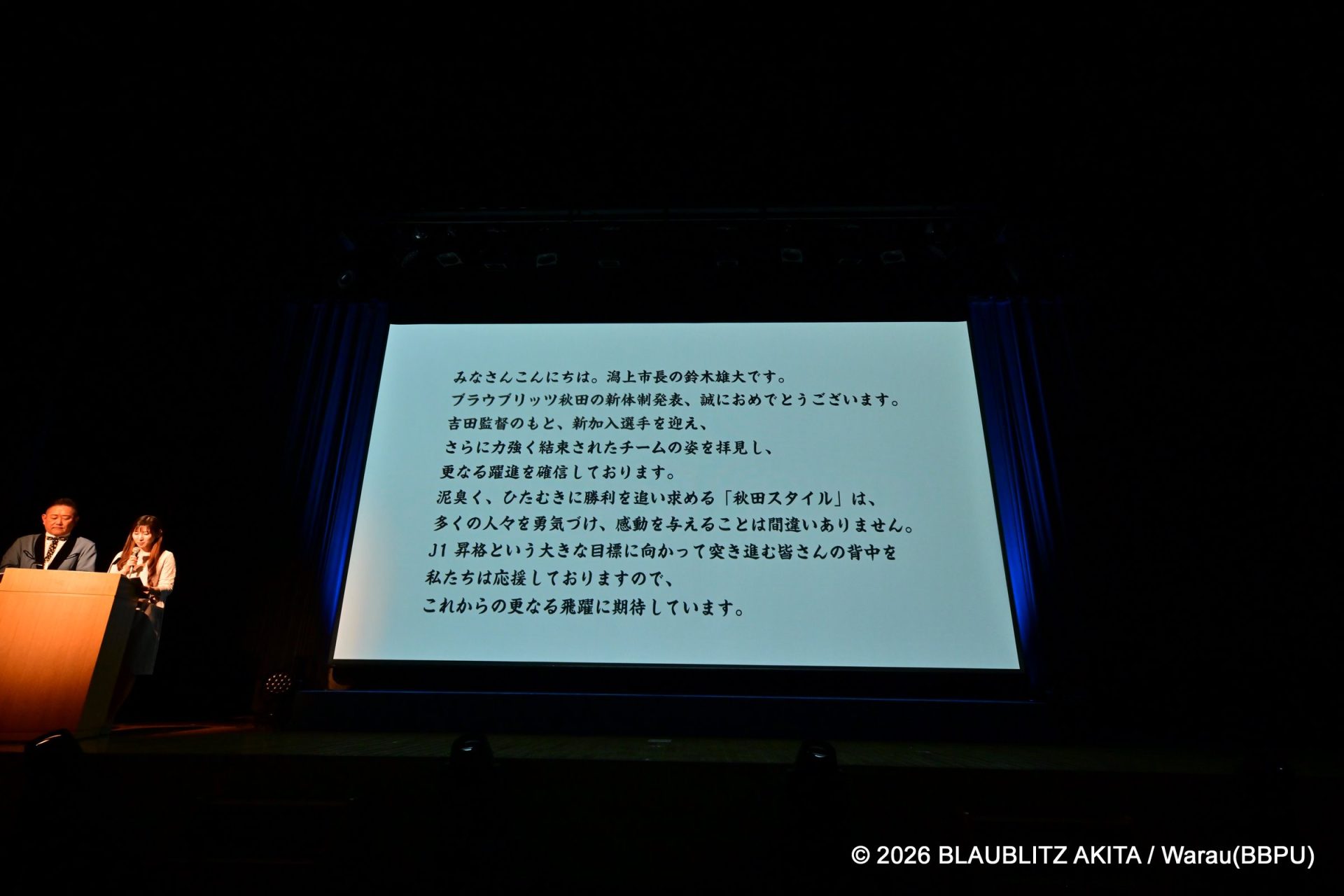 鈴木健太秋田県知事をはじめ、ブラウブリッツ秋田ホームタウンである、沼谷純秋田市長・市川雄次にかほ市長・菅原広二男鹿市長・湊貴信由利本荘市・鈴木雄大潟上市長よりメッセージをいただきました。