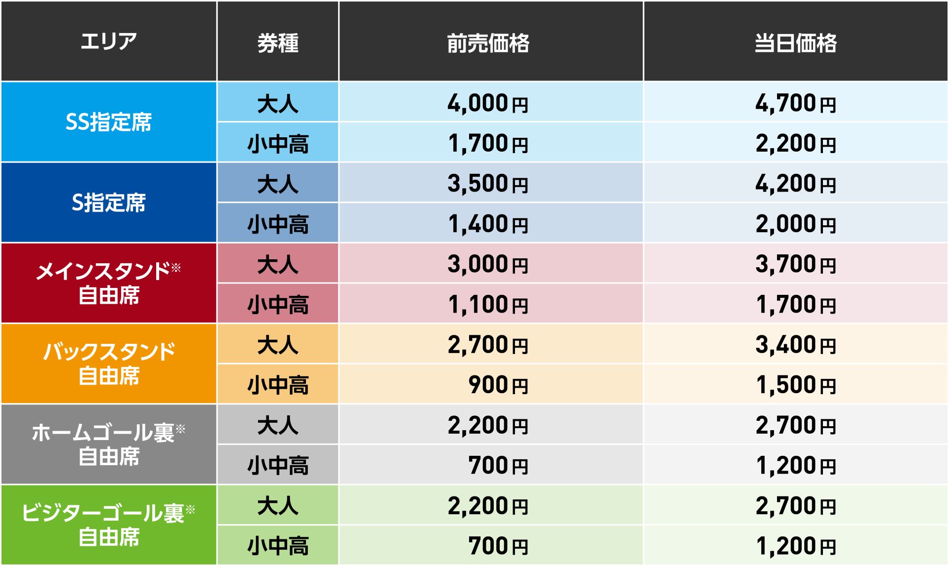 - 前売券のセブン-イレブン支払いは試合開催日3日前までとなります。