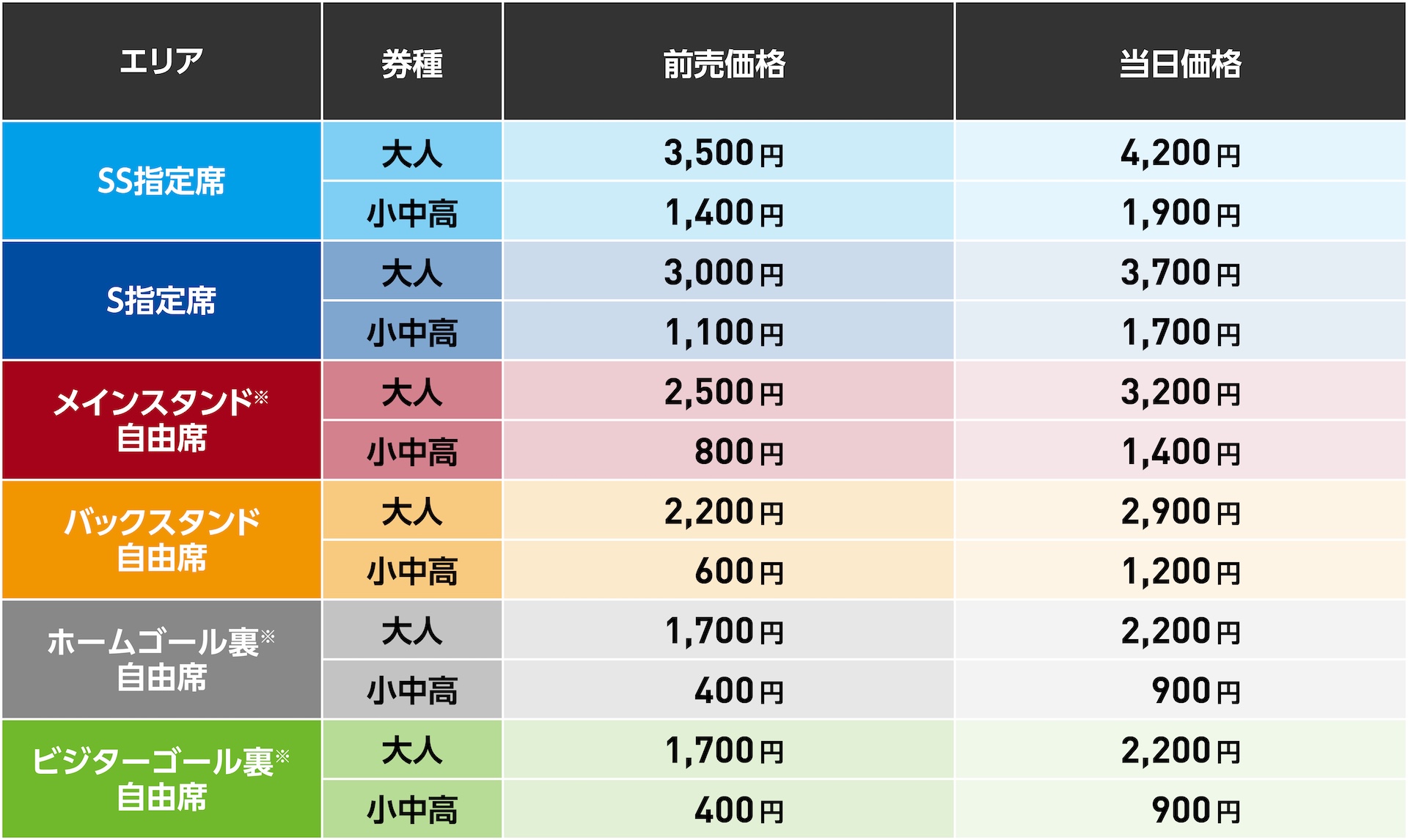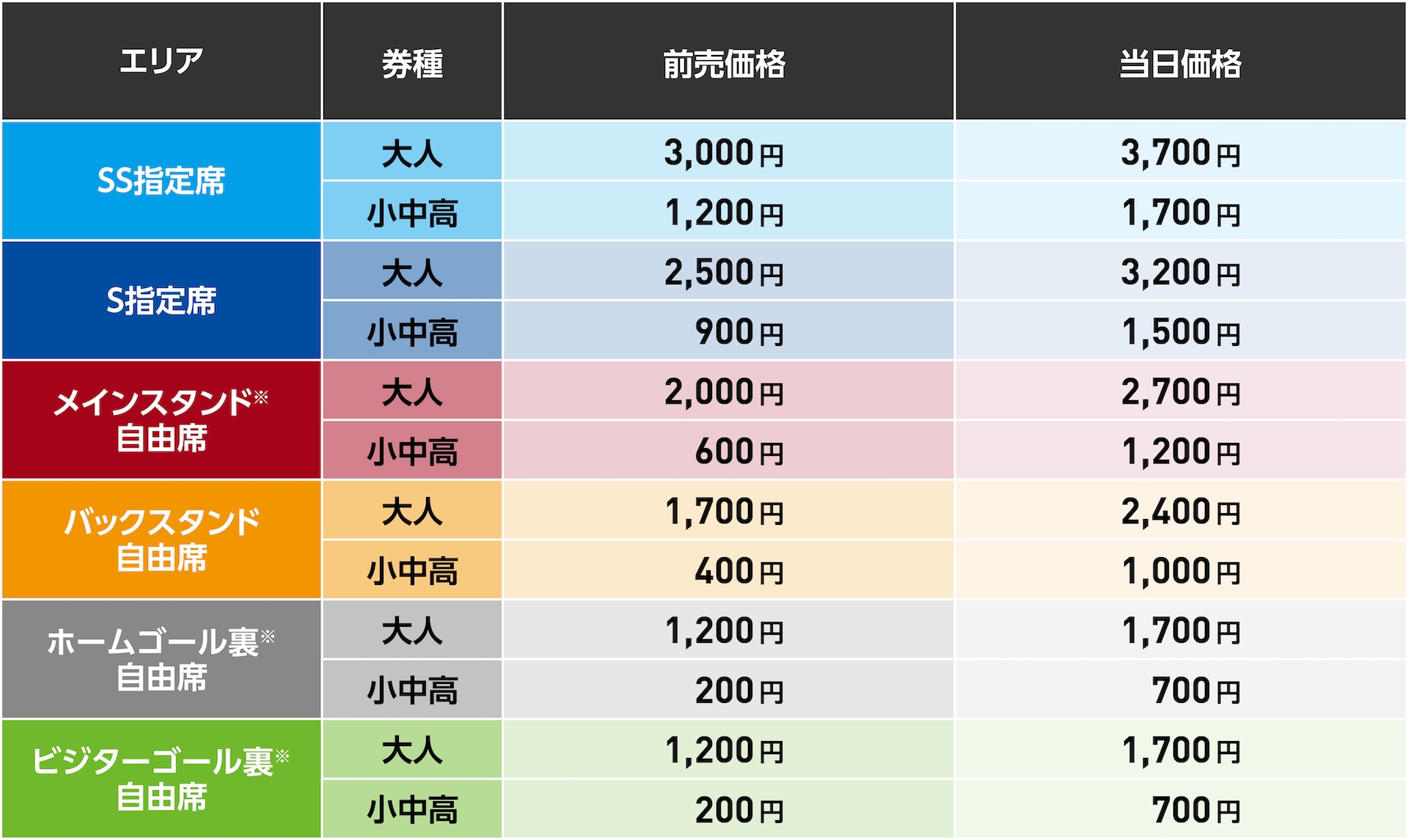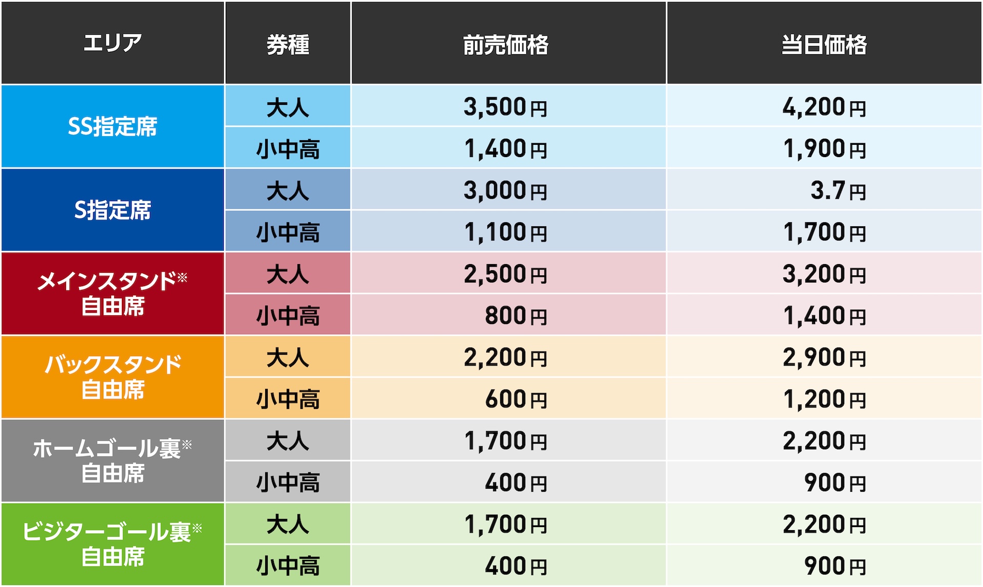 来場者数が多く見込まれる試合や連休、スペシャルイベントが開催される試合などはチケット料金を「★★★(みつぼし)」に設定させていただき、皆様によりよいサービスを提供していきます。